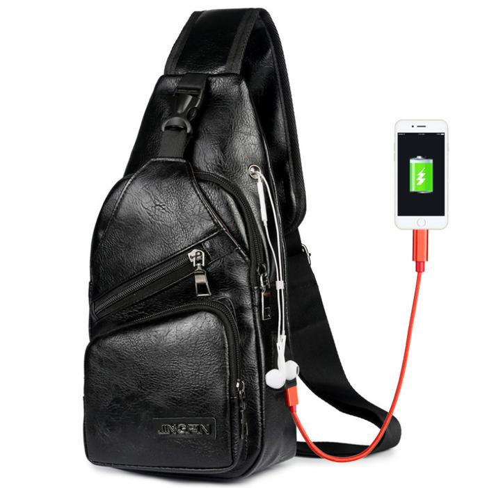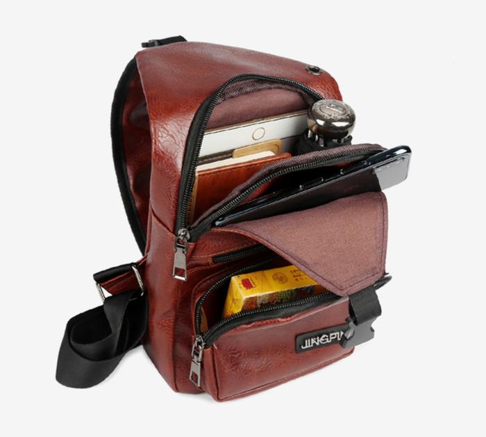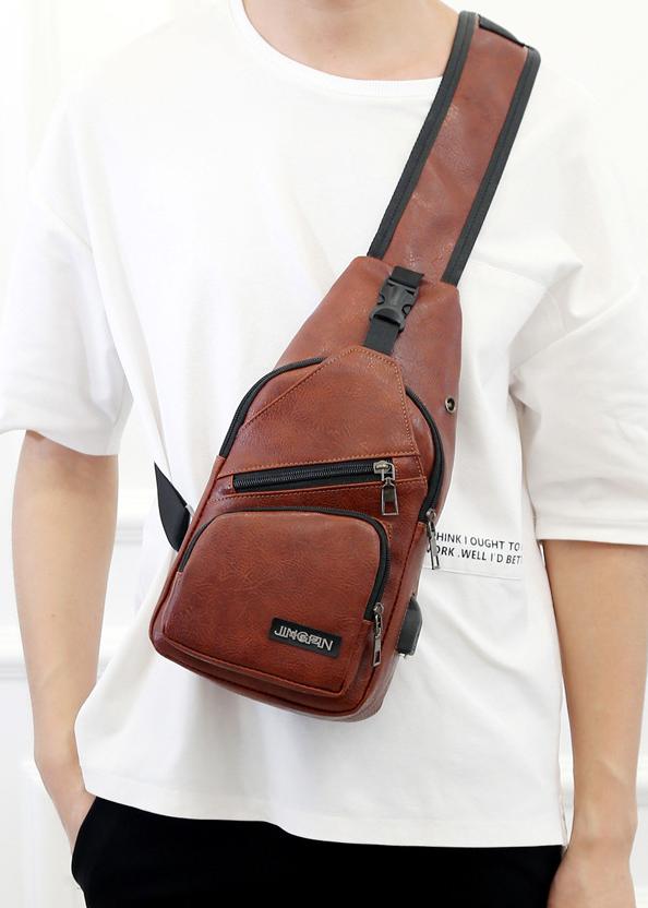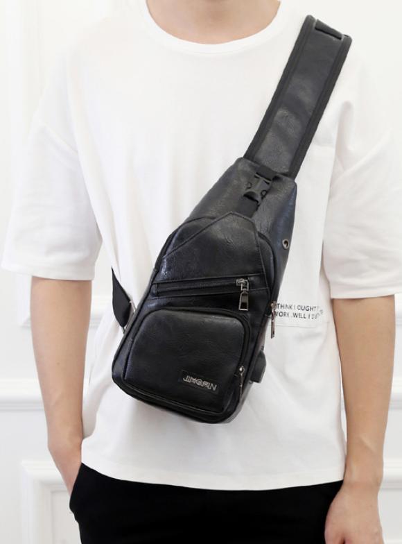 TAS SELEMPANG B305 PRIA BAHAN KULIT IMPORT SLING BAG - HITAM