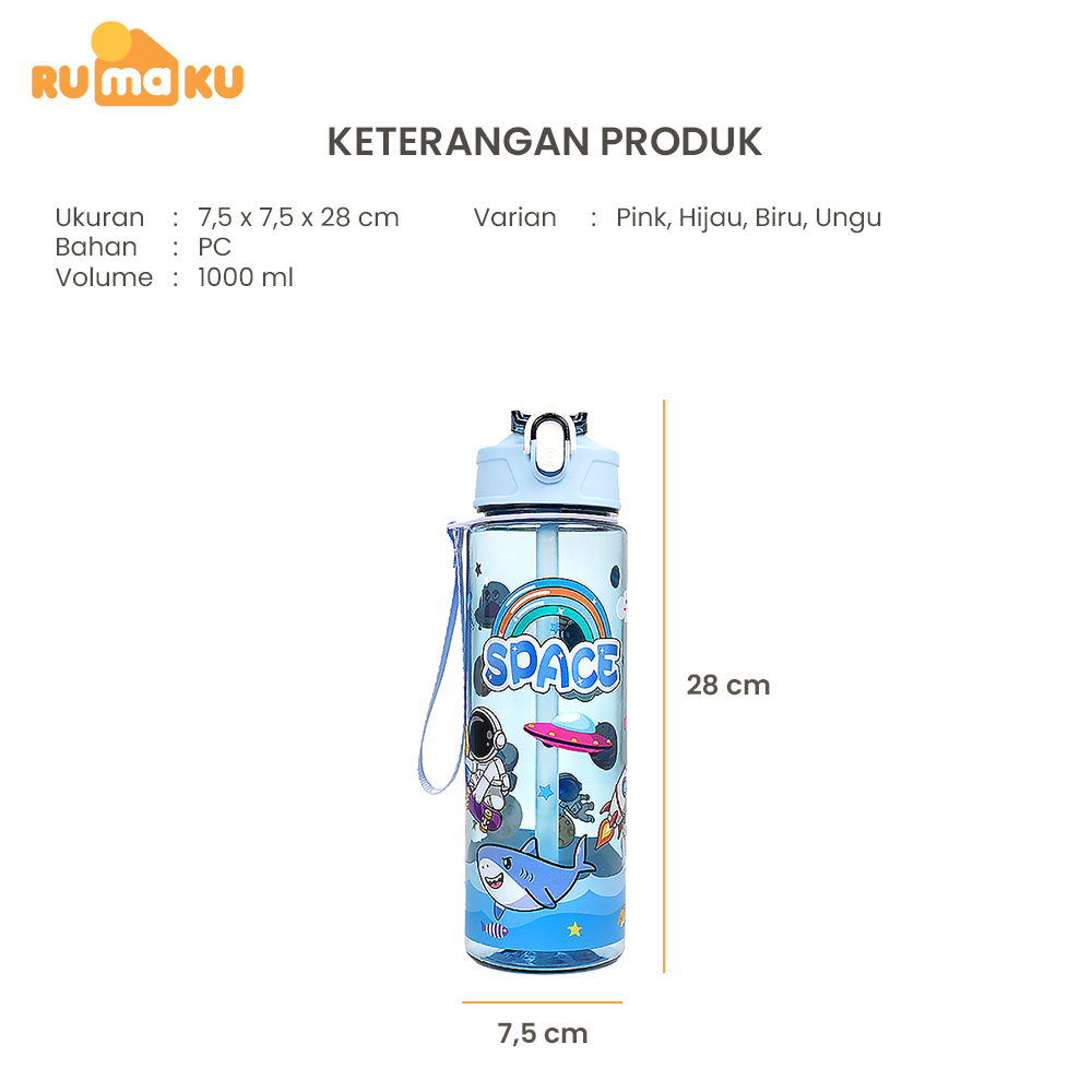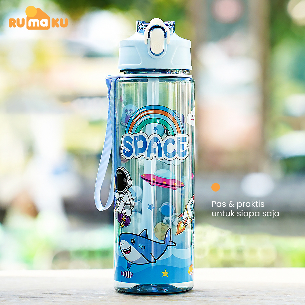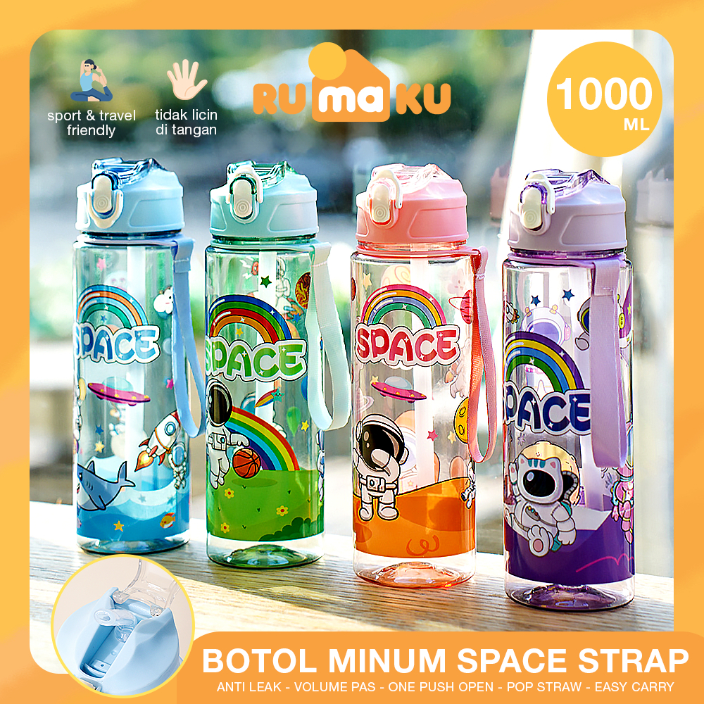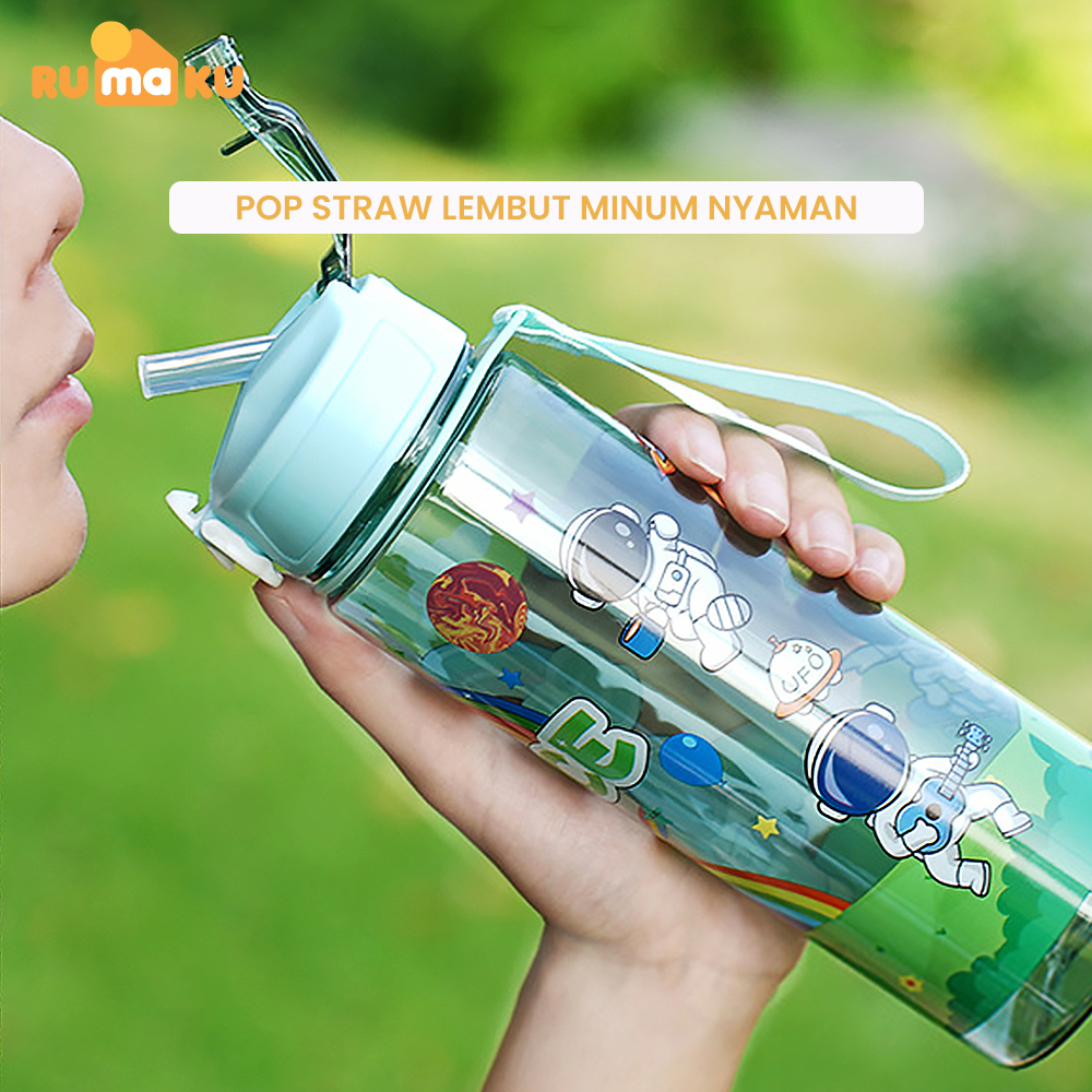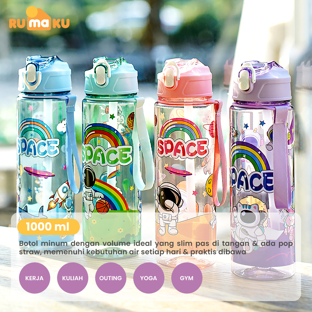 RMK Botol Minum Anak Sekolah Karakter Astronot Dengan Tali Sedotan Anti Tumpah 1000ml BPA FREE