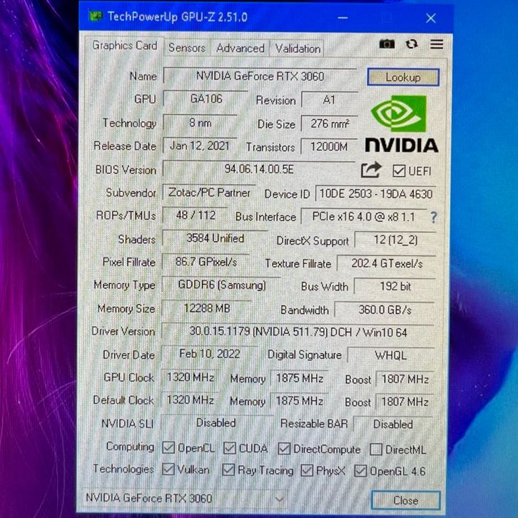 VGA RTX 3060 12GB ZOTAC TWIN EDGE OC GDDR6
