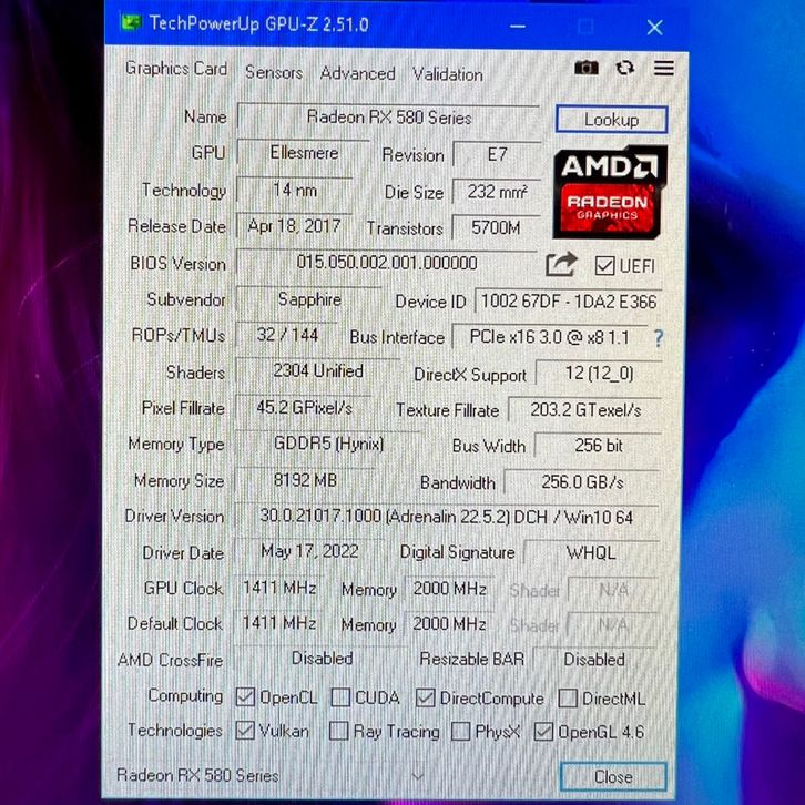 VGA RX 580 8GB SAPPHIRE NITRO+ GDDR5 (LIKE NEW)