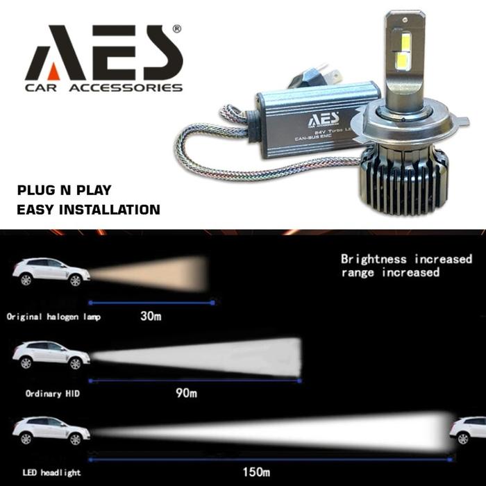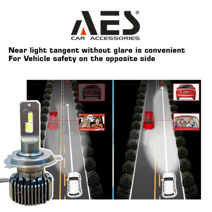 Lampu LED H4 Headlight Turbo AES 12-24 Volt untuk Mobil Car