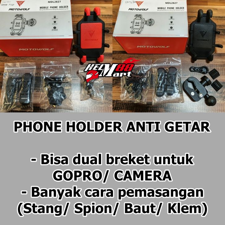 TERLARIS !!! Phone Holder + Breket Gopro Dudukan HP Anti Getar Bisa Action Cam MOTOWOLF 2827D Model Lobster 2827