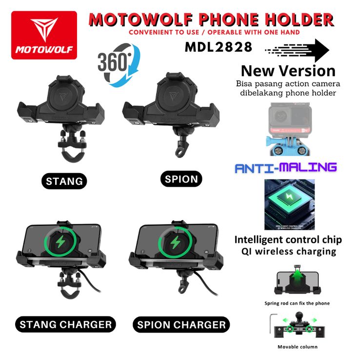 TERLARIS !!! holder hp motor Motowolf charger motor Usb Wireless spion stang