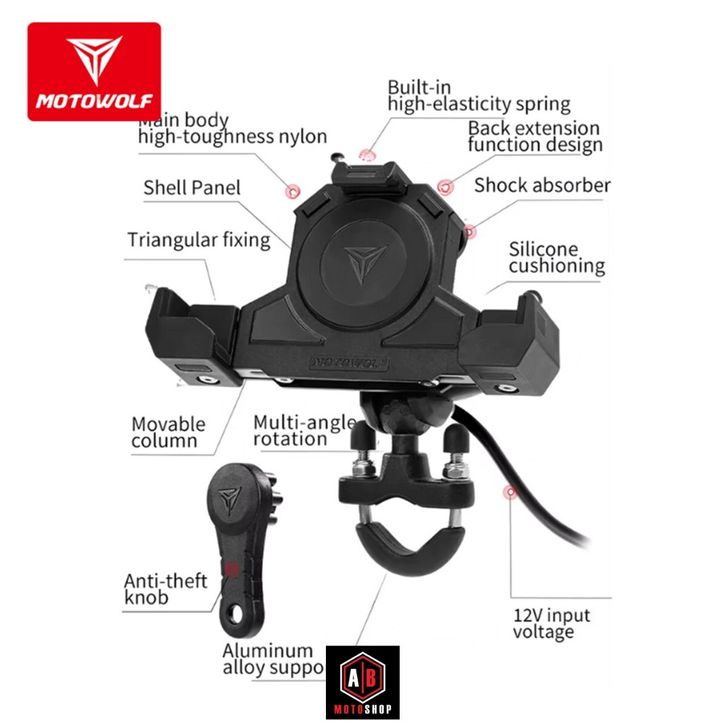 TERLARIS !!! Motowolf Phone Holder Triangle Landscape Peredam Getar Resizeable 2828