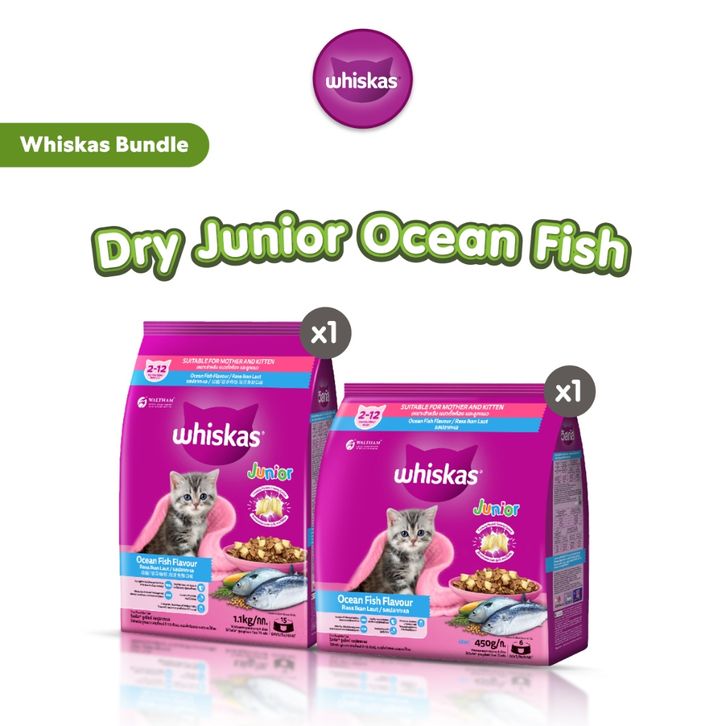 SPESIAL BUNDLE 1.5 KG Whiskas Makanan Kering Kitten Rasa Ocean Fish 1.1kg + 450gr