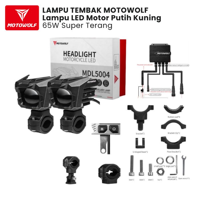 Lampu Tembak Motowolf Lampu LED Motor Putih Kuning 65W Super Terang