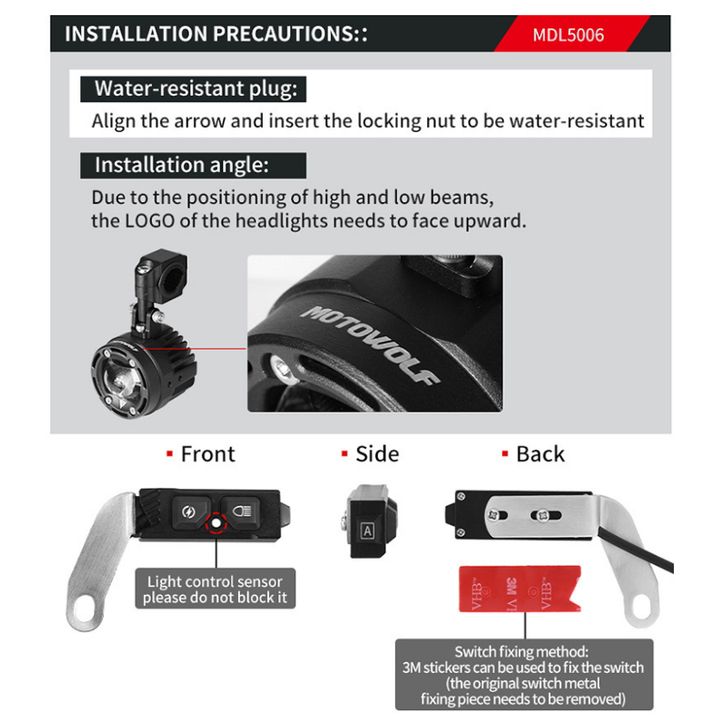 Lampu Tembak LED Motor Motowolf Waterproof Super Terang Putih Kuning