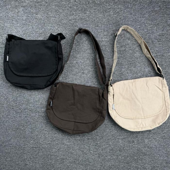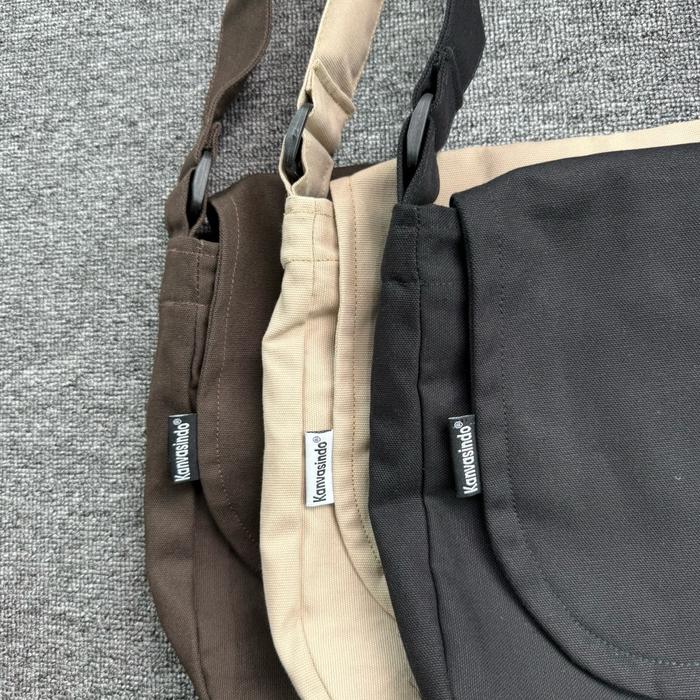 KANVASINDO TAS SELEMPANG PRIA KANVAS / SLING BAG KANVAS POLOS VOL 2 - BLACK