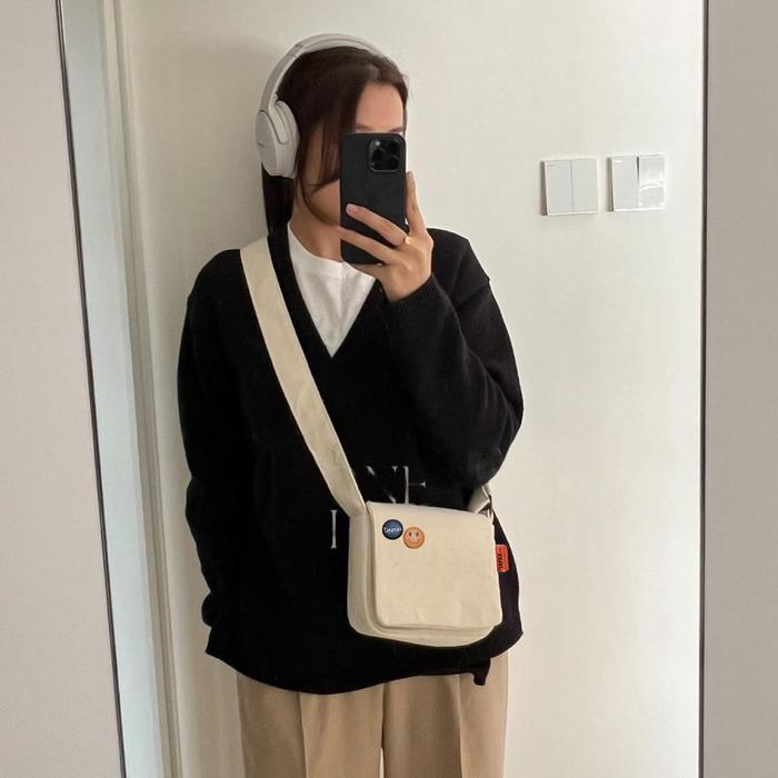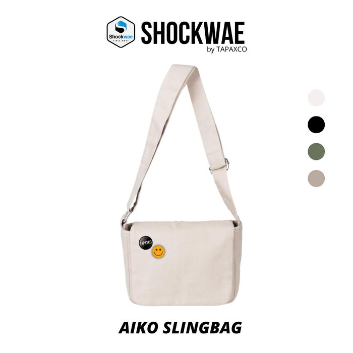 TAPAXCO TAS SELEMPANG PRIA TERBARU AIKO KOREAN SLINGBAG KANVAS CASUAL LOCAL ORIGINAL HITAM - WHITE