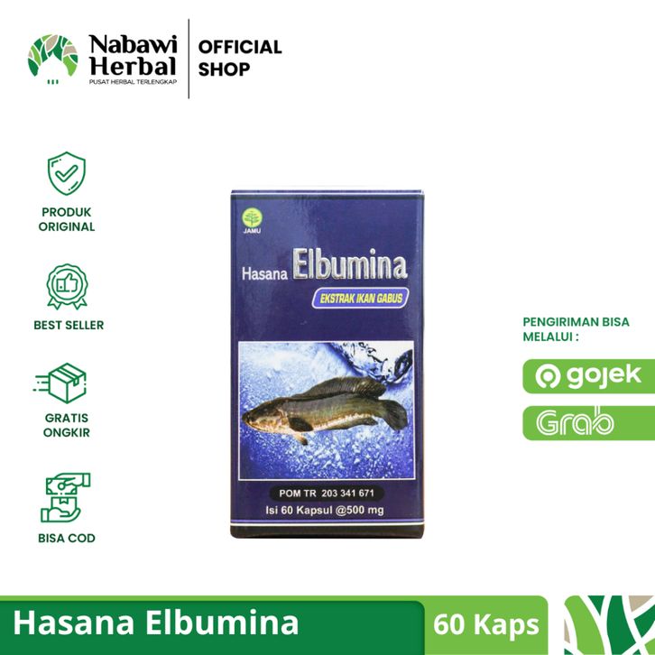 OBAT HERBAL HASANAH ELBUMINA - KAPSUL EKSTRAK IKAN GABUS ISI 60 KAPSUL