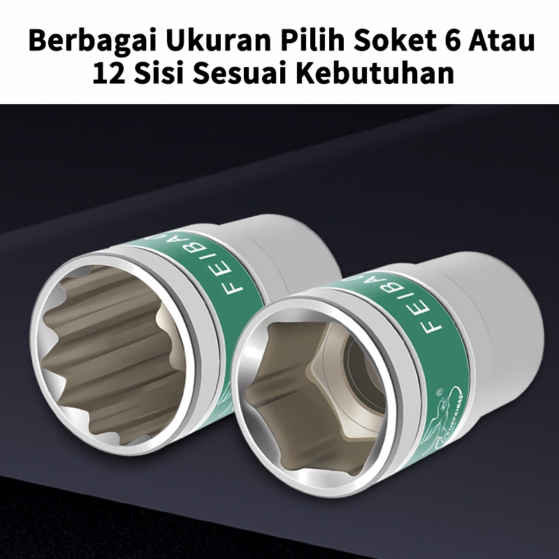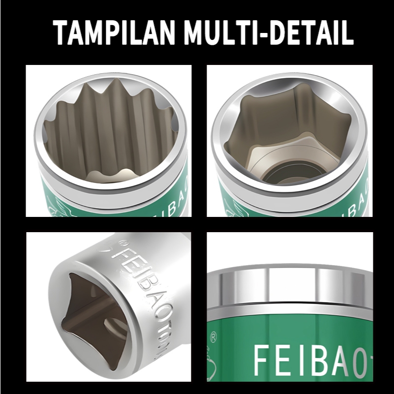 Feibao Mata Shock Pendek 1/2 Inch 8mm-32mm 6 & 12 Sudut | Kunci Sok Torsi Kuat Baja CR-V