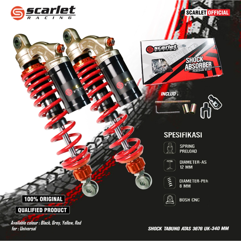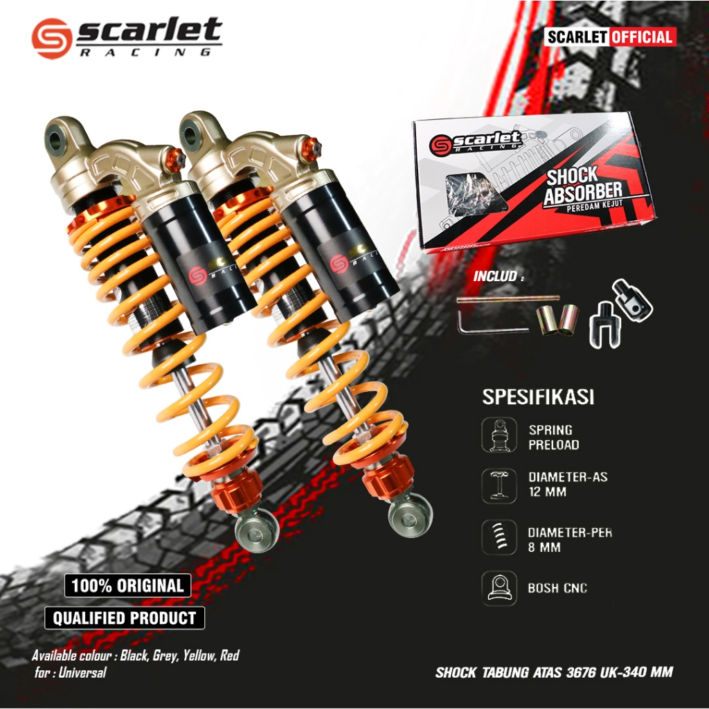 Shock Tabung Racing Scarlet Atas 3676 Ukuran 340mm (O+U) Terbaru Kualitas Original Termurah Terlaris Official Store