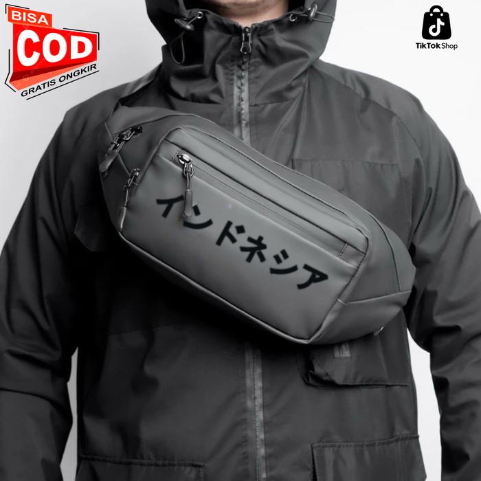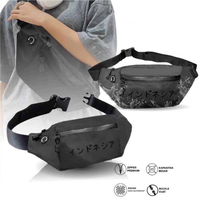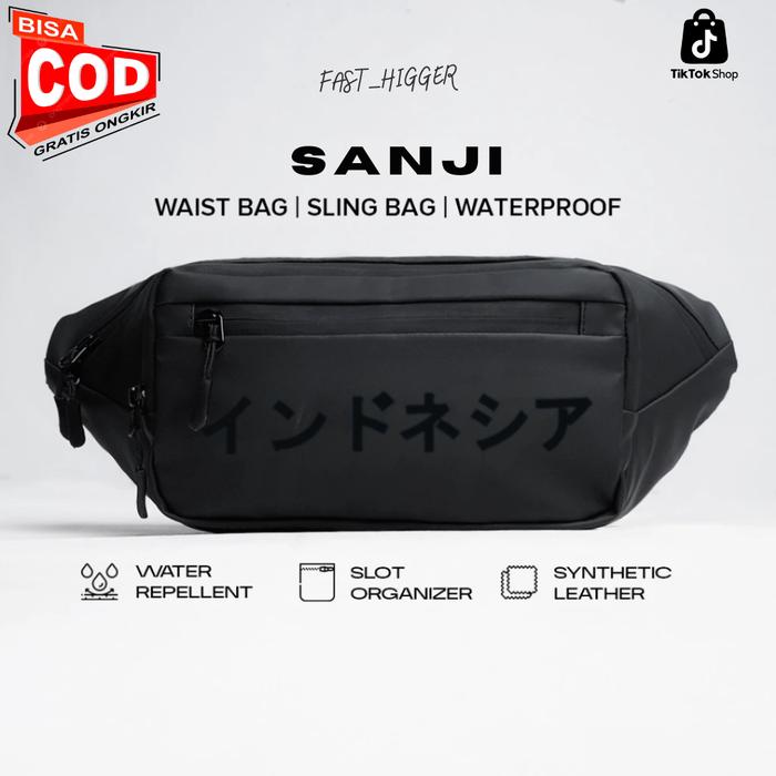 TAS PRIA BIMO WATERPROOF SANJI ORIGINAL HITAM SELEMPANG & BAHU PINGGANG WAISTBAG - COWOK - SLINGBAG
