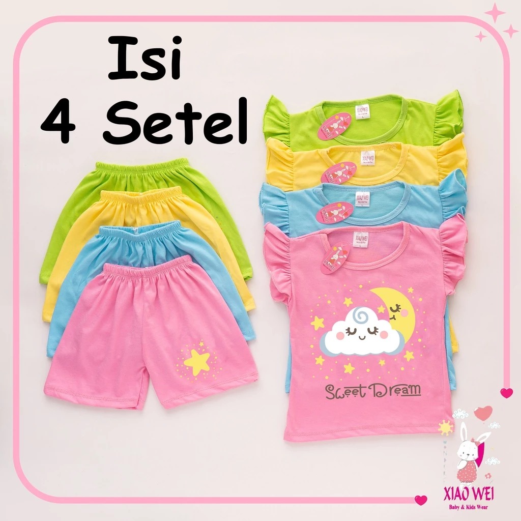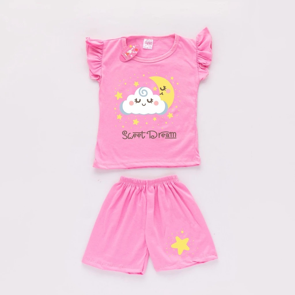 ( ISI 4 SETEL) Setelan Anak Perempuan Ruffle Sweet Dreams/ Setelan Bayi Perempuan / Baju Anak anak perempuan / Baju Bayi
