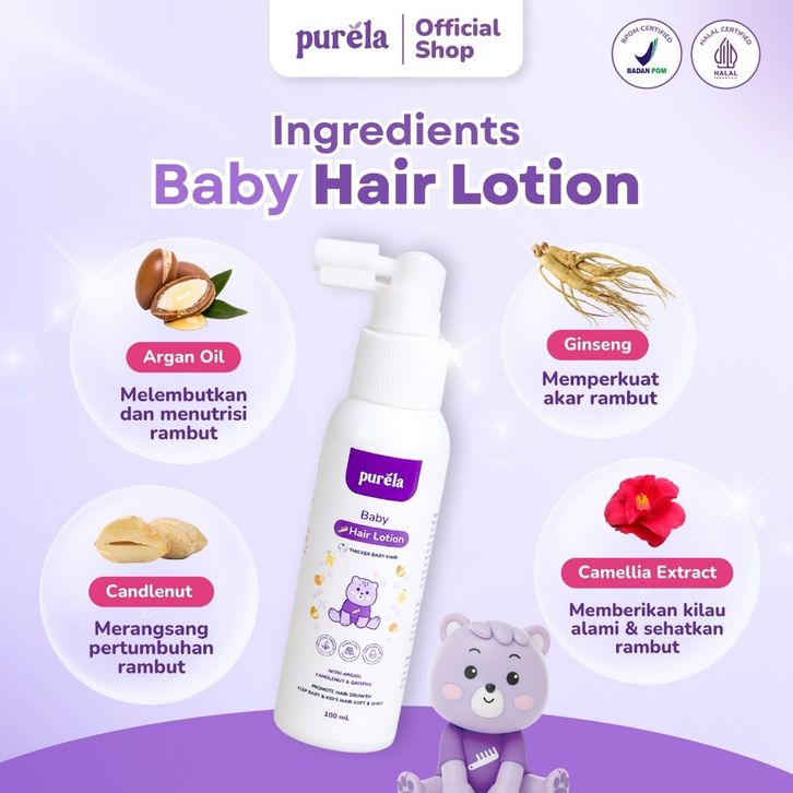 PURELA HAIR LOTION 100ML - Melabatkan dan Menutrisi Rambut Bayi -Natural Organic