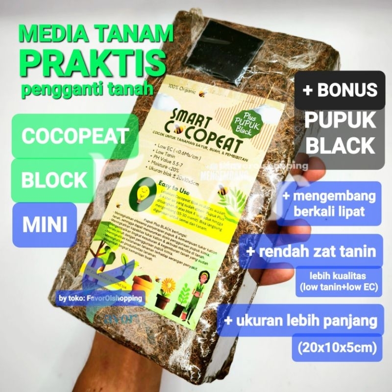 COCOPEAT BLOCK Mini 650gr BONUS PUPUK BLK Media Tanam PRAKTIS Sabut Kelapa Halus Organik