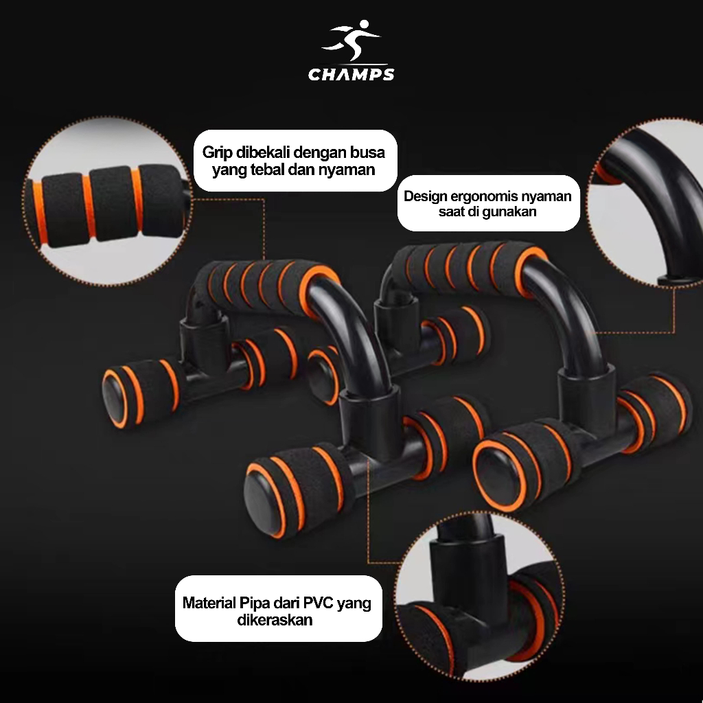 CHAMPS Push Up Stand Murah – Alat Push Up Anti Slip, Ringan & Kuat untuk Latihan di Rumah Tipe H & S