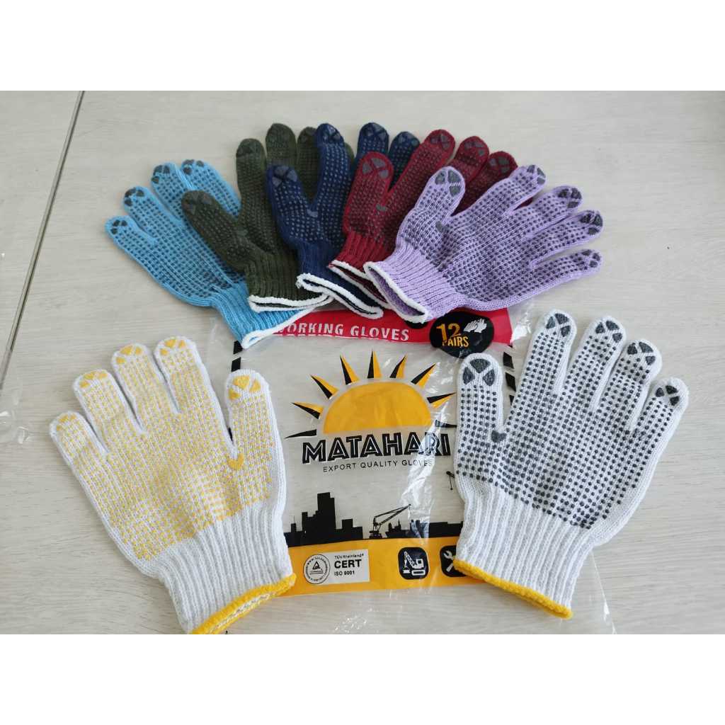 Sarung Tangan paket 1 Lusin / 12 Pasang Sarung Tangan Kerja/Sarung Tangan Antislip Warna