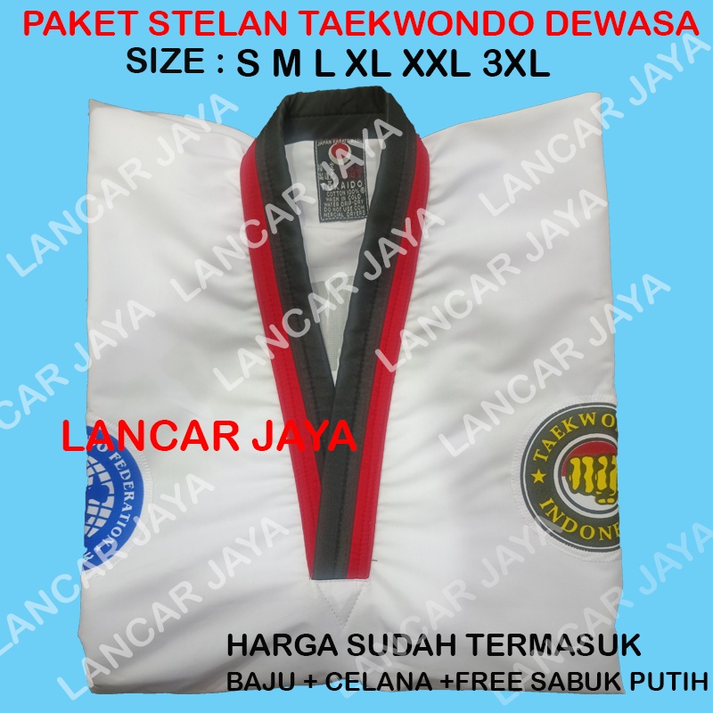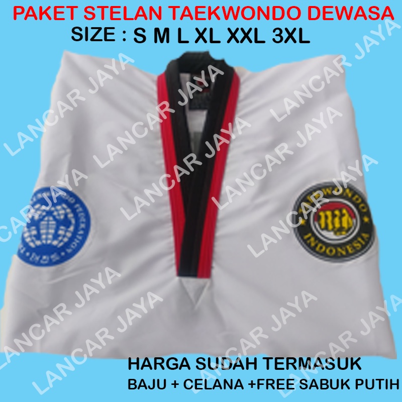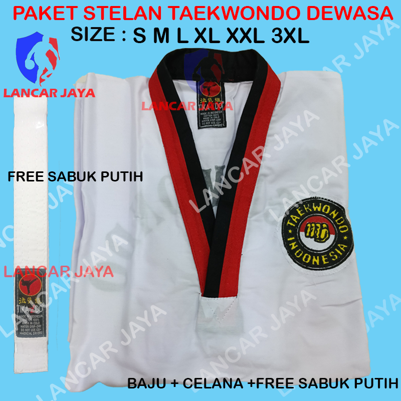 BAJU TAEKWONDO KRAH HITAM MERAH BELADIRI DEWASA FREE SABUK PUTIH
