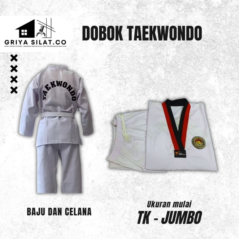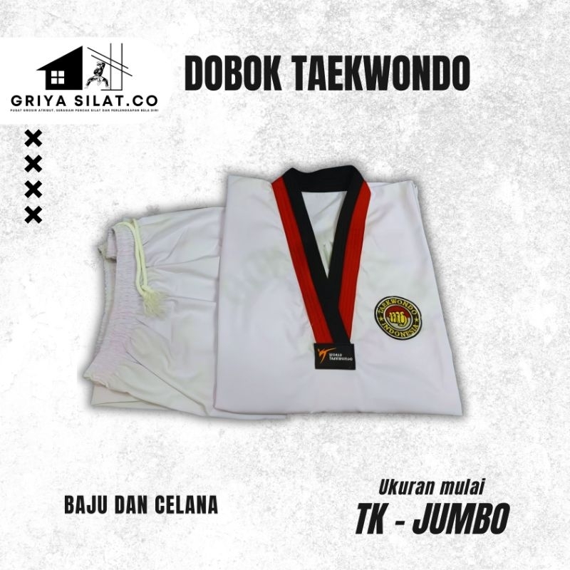 Baju bela diri taekwondo kerah merah hitam, seragam taekwondo, seragam silat taekwondo