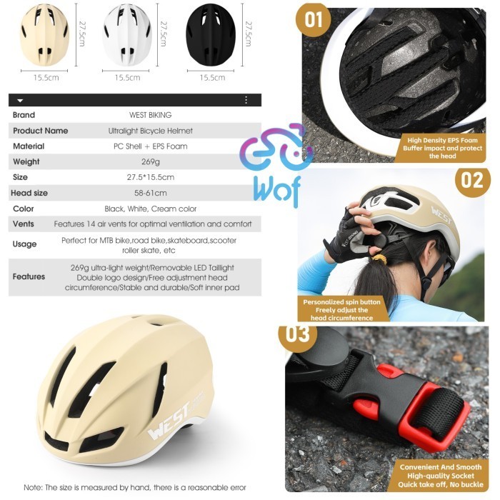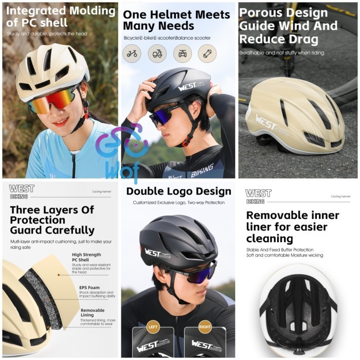 WEST BIKING 113 Helm Sepeda Lipat MTB Road Bike Helmet Aero 0708113 EPS Cycling Helmet Integrated Shape Men's and Women'