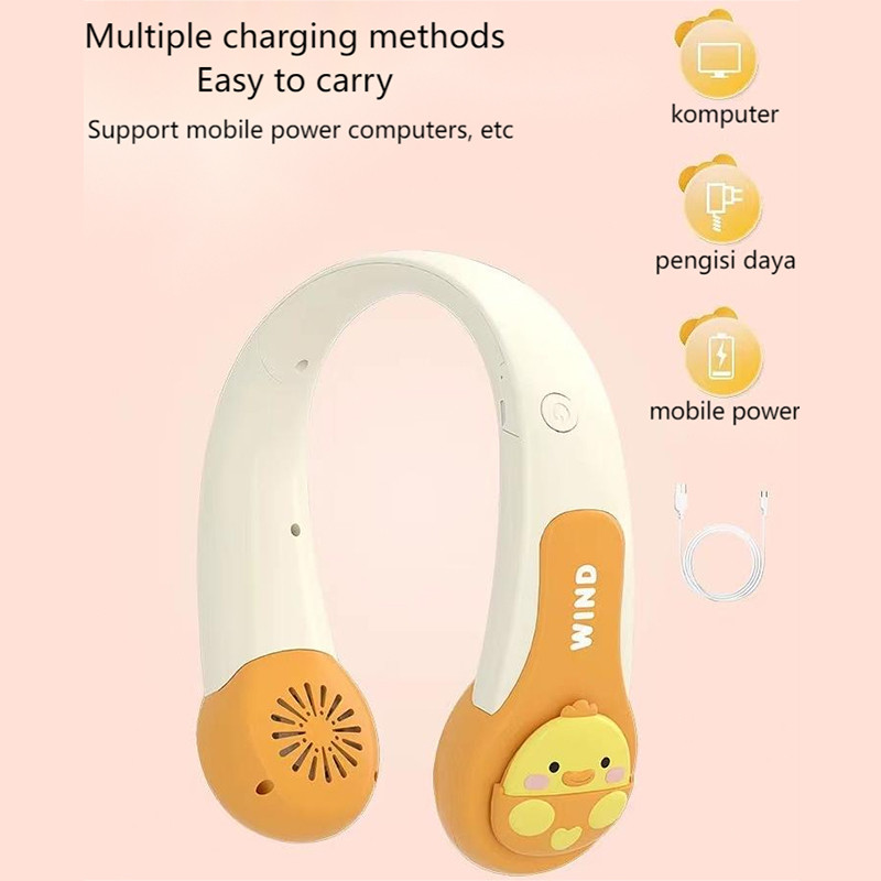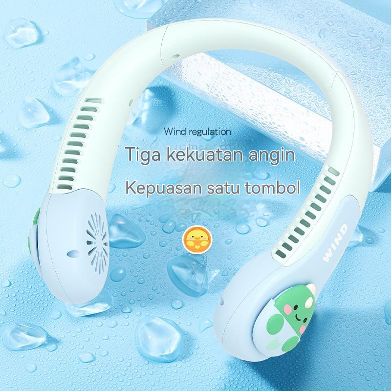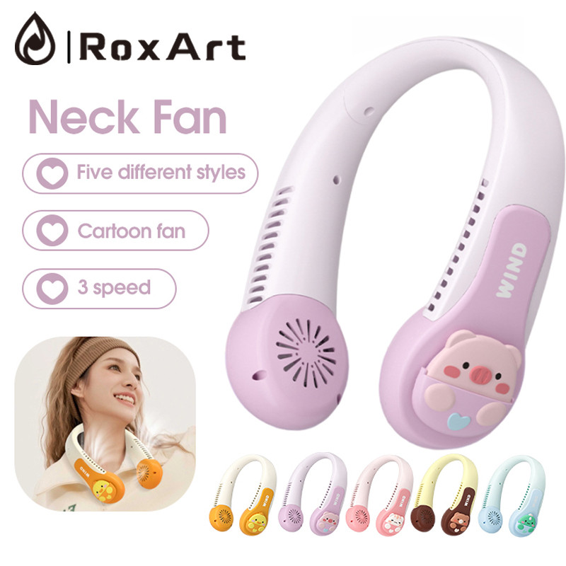 Roxart Kipas Angin Leher Portabel Tidak Ada Daun Mini Silent Kipas 3-Speed Wind USB Lucu Kipas