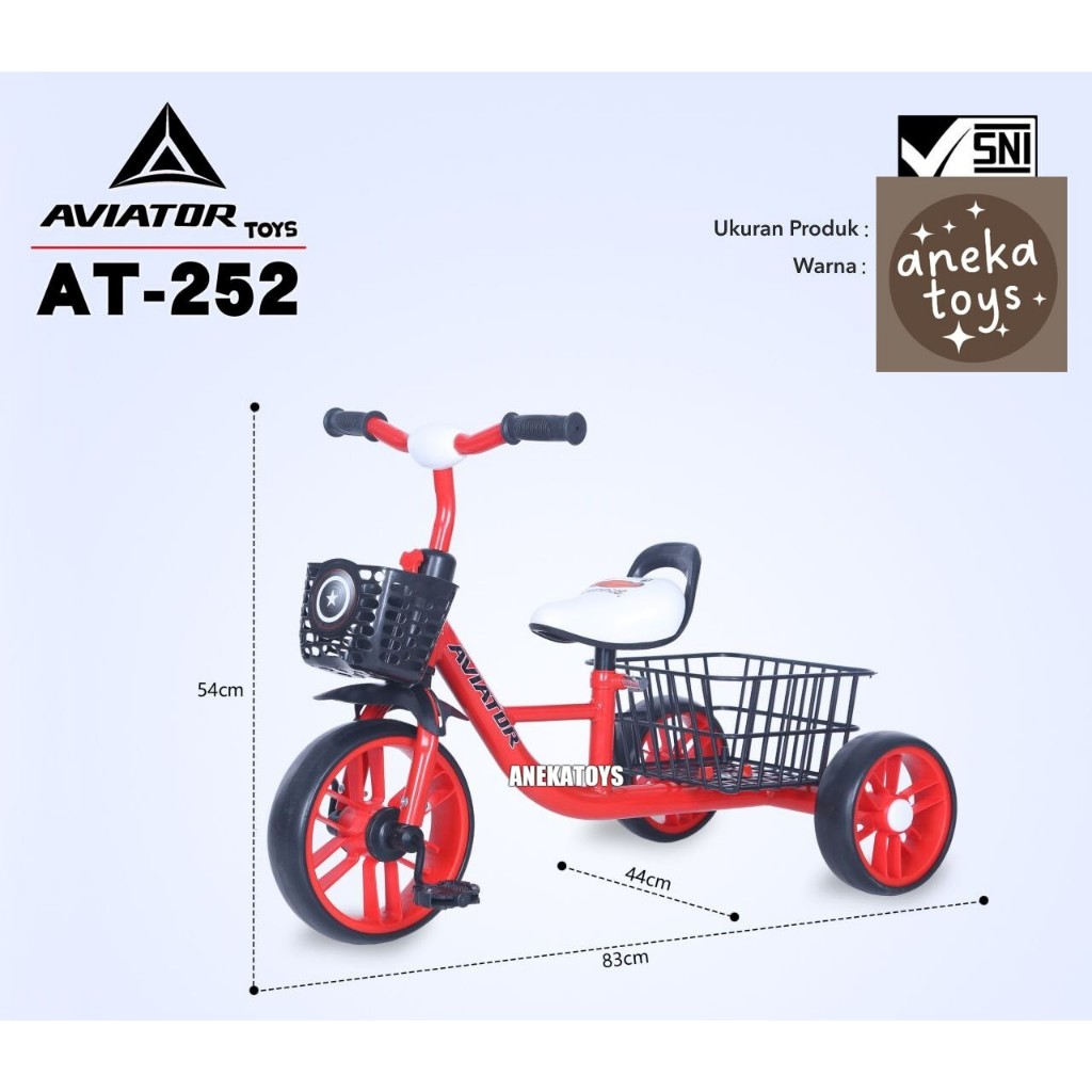 Sepeda Roda Tiga Aviator AT252 Ban Eva Keranjang Belakang Tanpa Musik