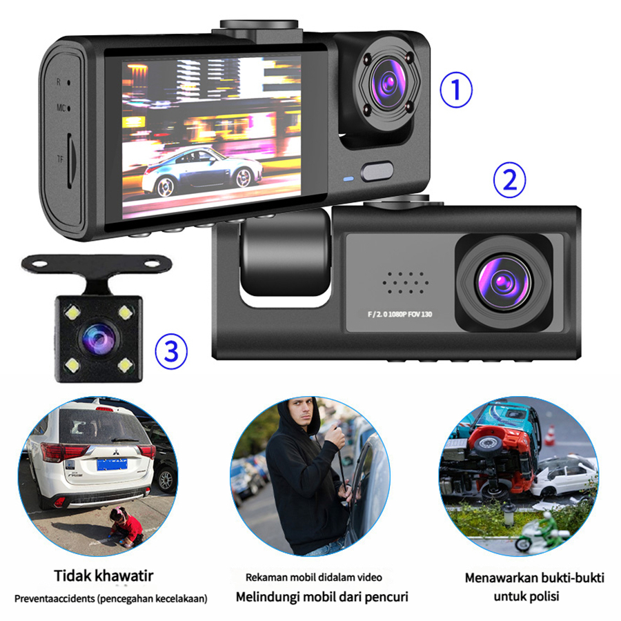 [Mall] DASHCAM MOBIL 3 CAMERAS 1920P HD NIGHT VISION LOOP RECORDING AI CERDAS MENANGKAP PEMOTRETAN