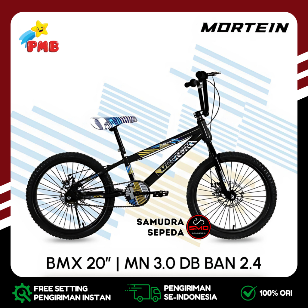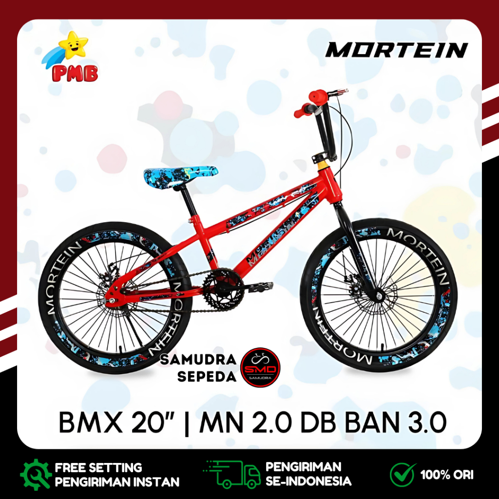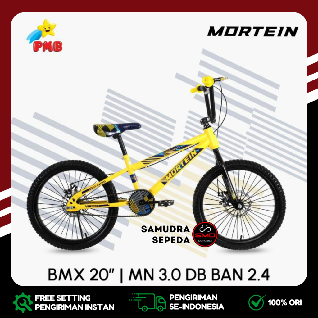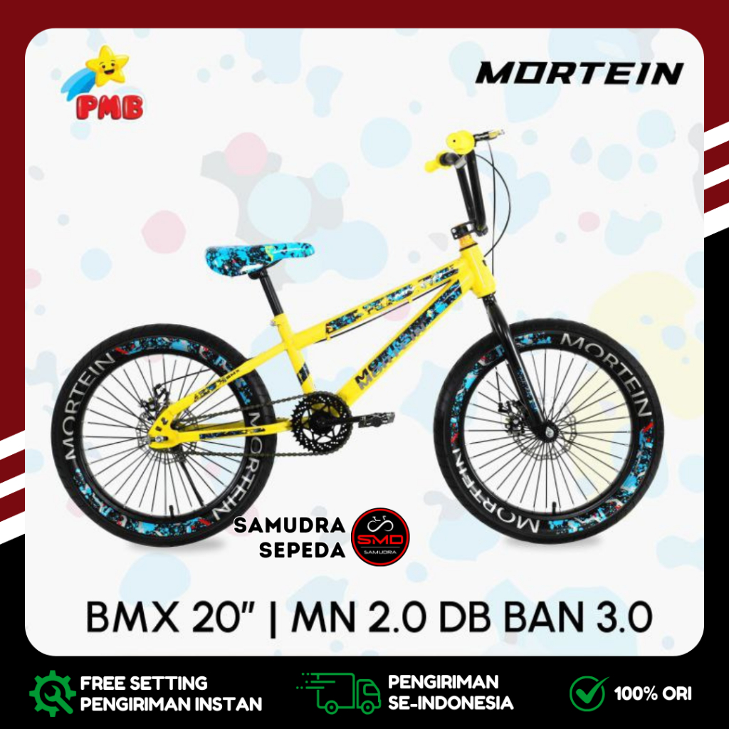 Sepeda Anak Laki PMB BMX 20 Inch Mortein MN 2.0 Ban Jumbo 3.0 dan Ban Kurus 2.4 Rem Cakram Murah BDG