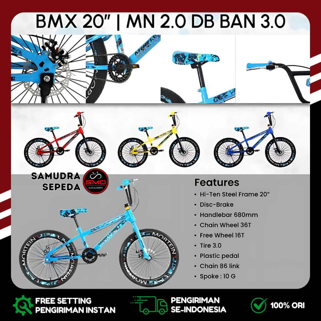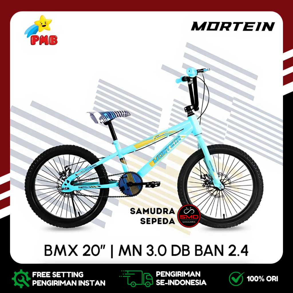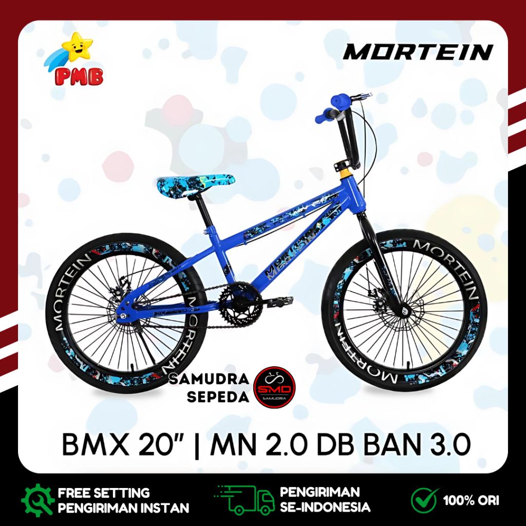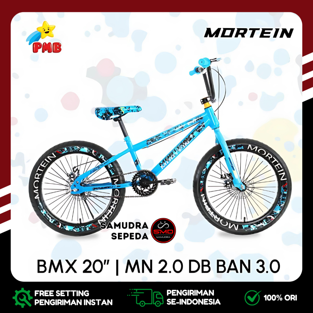 Sepeda Anak Laki PMB BMX 20 Inch Mortein MN 2.0 Ban Jumbo 3.0 dan Ban Kurus 2.4 Rem Cakram Murah BDG