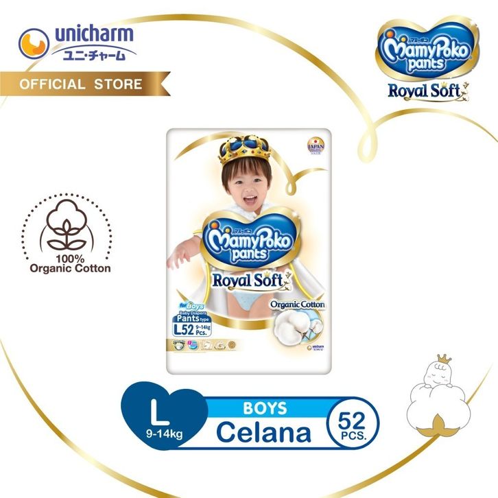 MamyPoko Royal Soft Organic Cotton - All Size (S-XXL) - Popok Celana - 1 Pack - Ultra Jumbo