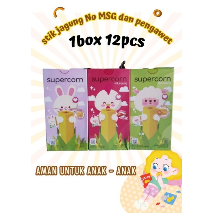Supercorn 1 box (12pcs) Stik Jagung Cemilan Snack Sehat Anak Non MSG Halal