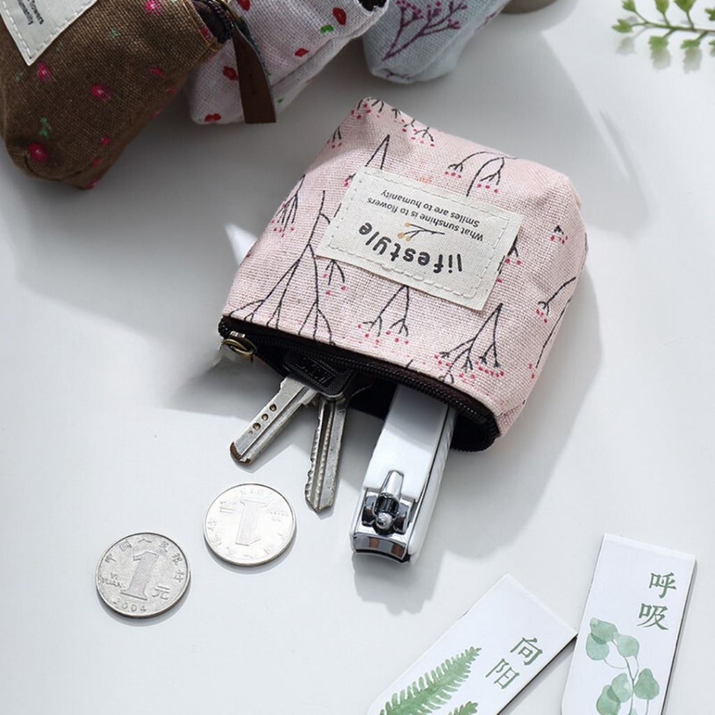 HC Pouch Dompet Koin Resleting Live Style Kanvas Dompet Serbaguna Sleting Motif Bunga Wallet Coin Dompet Perhiasan Heads