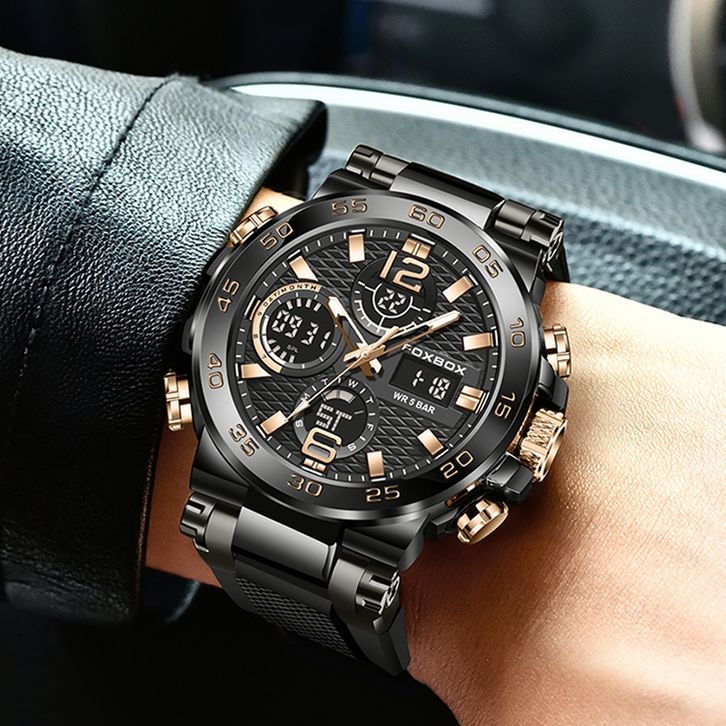 Jam Tangan Digital LED Dual Display Asli Jam Tangan Olahraga Pria Tahan Air Jam Tangan Kuarsa Chronograph Watch
