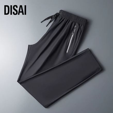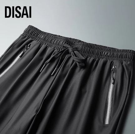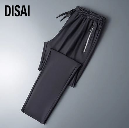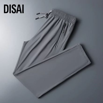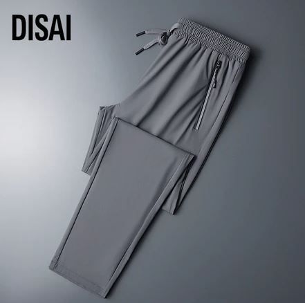 Celana Pria Saku Ritsleting Panjang Ice Silk Fabr1c Keren Ringan Bernapas Elastisitas Pants