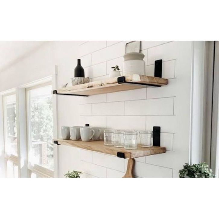 TERLARIS Rak dinding ambalan kayu penyangga besi (Extra lebar 20cm) Rak ambalan dinding kayu Rak serbaguna