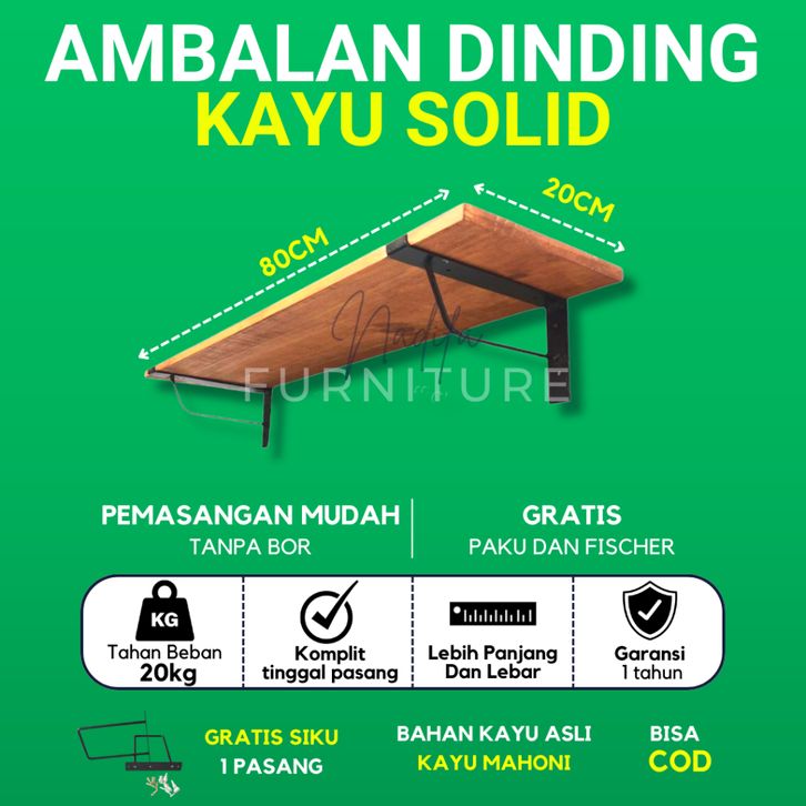 TERMURAH [] Rak Dinding Buku EXTRA LUAS Ambalan Kayu Asli Original Dekorasi Dapur Tempat Bumbu Hiasan unirg