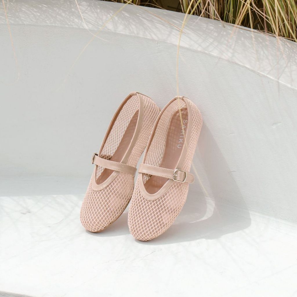 Sepatu Wanita Sahiku Brielle Mesh FlatShoes Sepatu Balet Fishnet Mary Jane Flat Shoes Jaring Korean Style Wanita