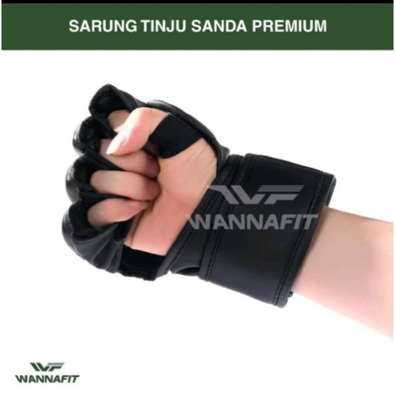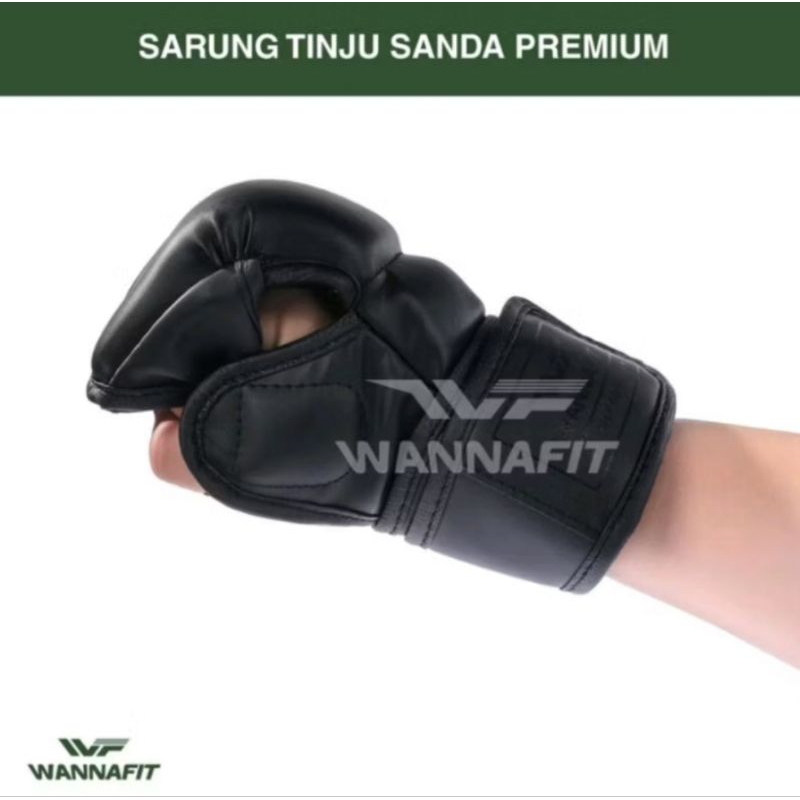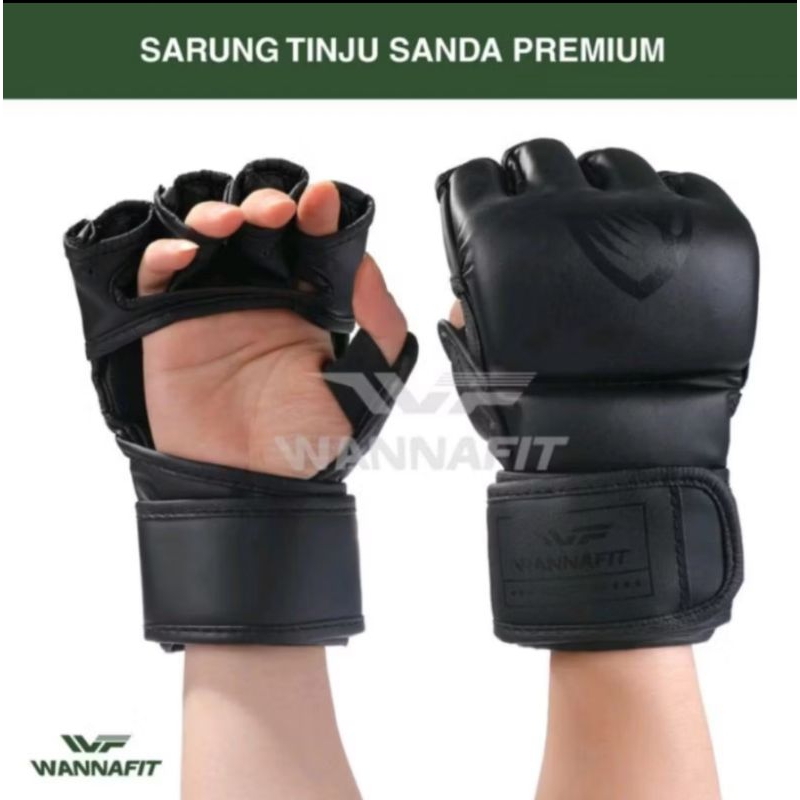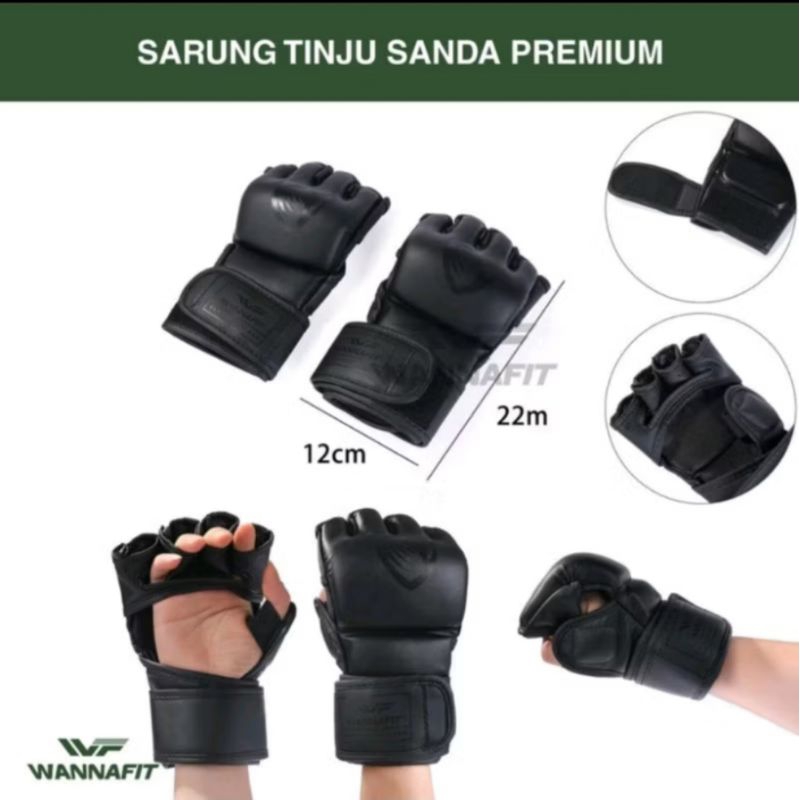 SARUNG TANGAN OLAHRAGA BELADIRI MUAYTHAI MMA BOXING GLOVE HALF FINGER SANDA PREMIUM WANNAFIT