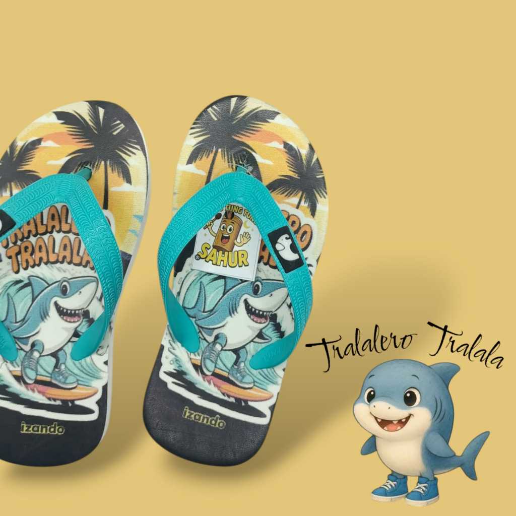 Izandokids | Sandal Anomali Tung Tung Tung Sahur Sendal jepit Anak Cewek/Cowok Tralalero Tralala