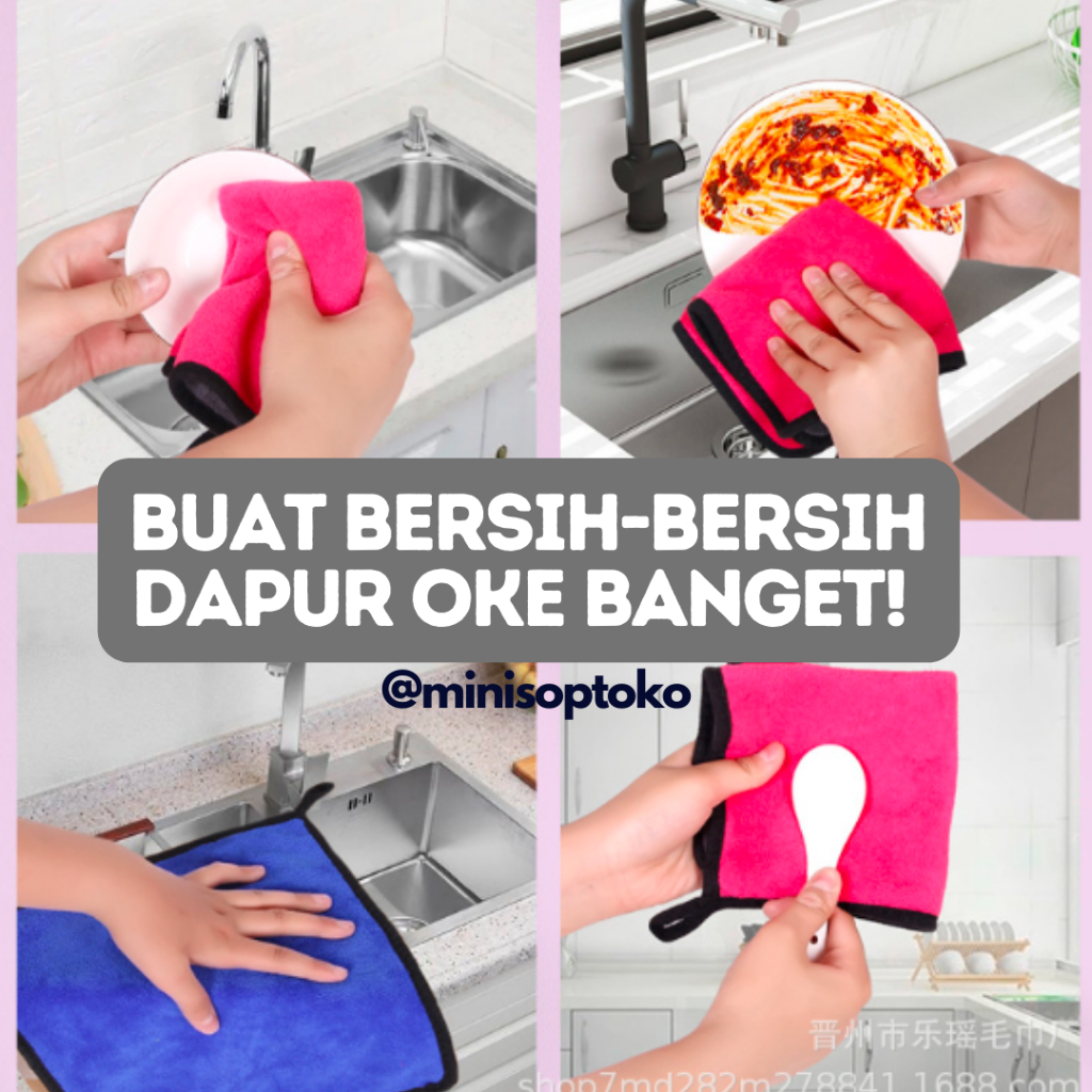 Kain Lap Microfiber Dapur Mobil Motor Multifungsi Serbaguna Handuk Towel Premium Tebal Anti Minyak 2 Sisi 40x60 cm