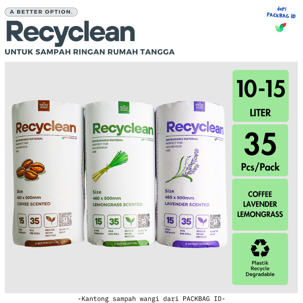PACKBAG ID Recyclean Ukuran 10L - 15L, Kantong Sampah Wangi Degradable, 35pcs per roll