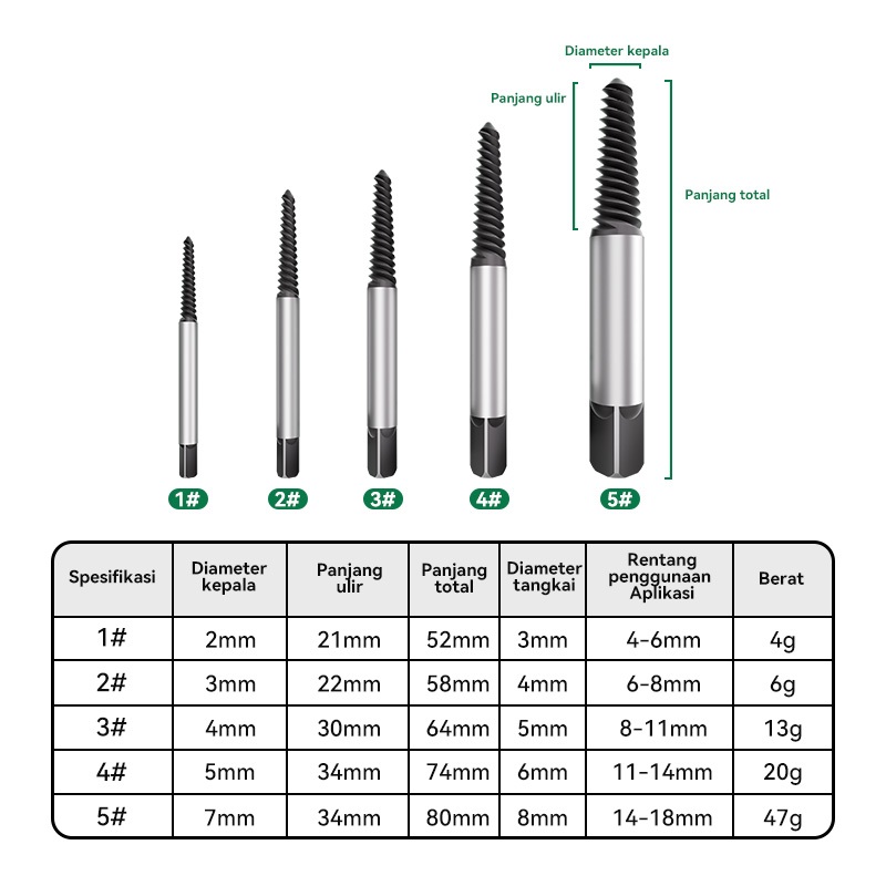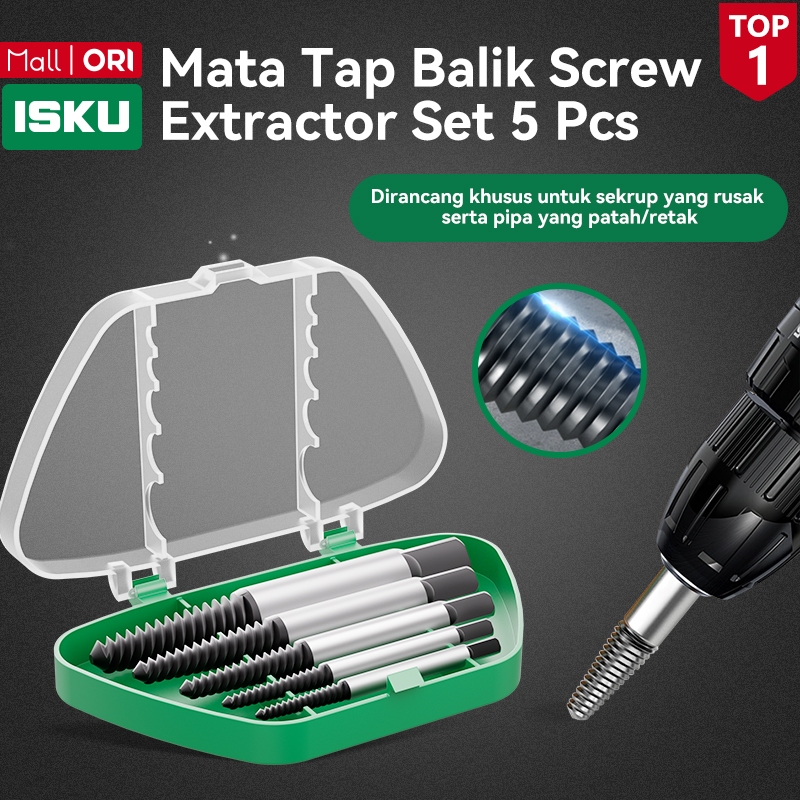 ISKU Alat Pencabut Baut Patah 5PCS Set Wire Extractor Bahan HSS Anti Slip Tahan Karat