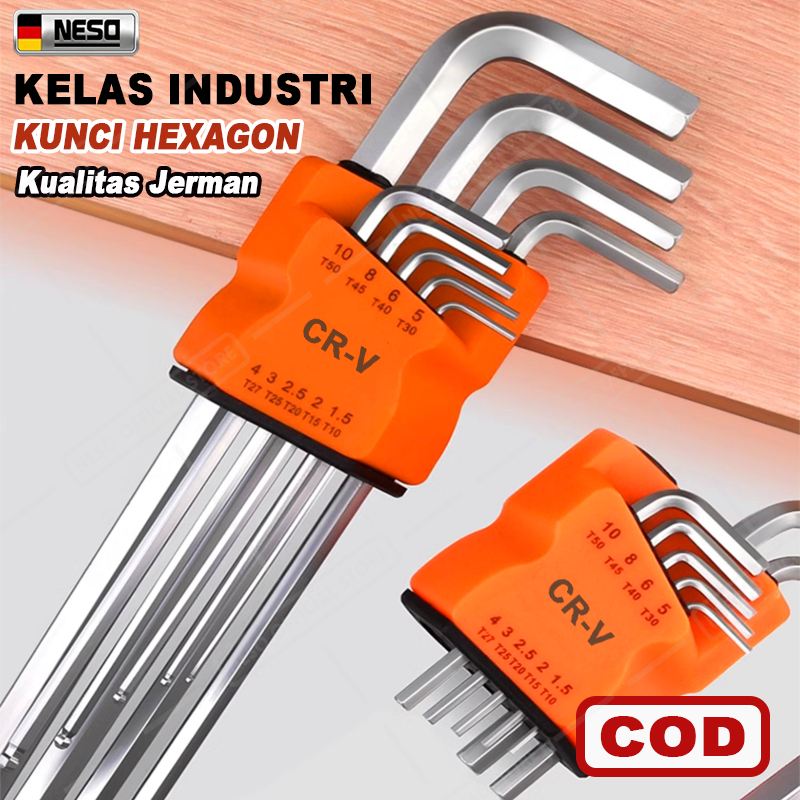 NESO Kunci L Set panjang Hex Key 9pcs Jenis Bunga S2 Ball Point Hexagon L Key Bagus Wrench Ball-Point 2
