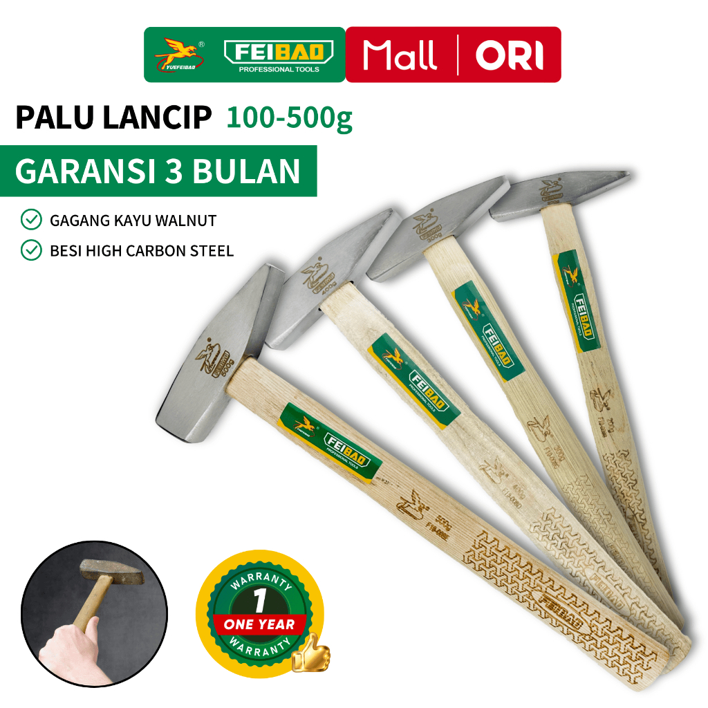 Feibao Palu Tukang Ujung Lancip 100-500G Fitter Hammer Gagang Kayu Fiberglass Pemakaian Serbaguna