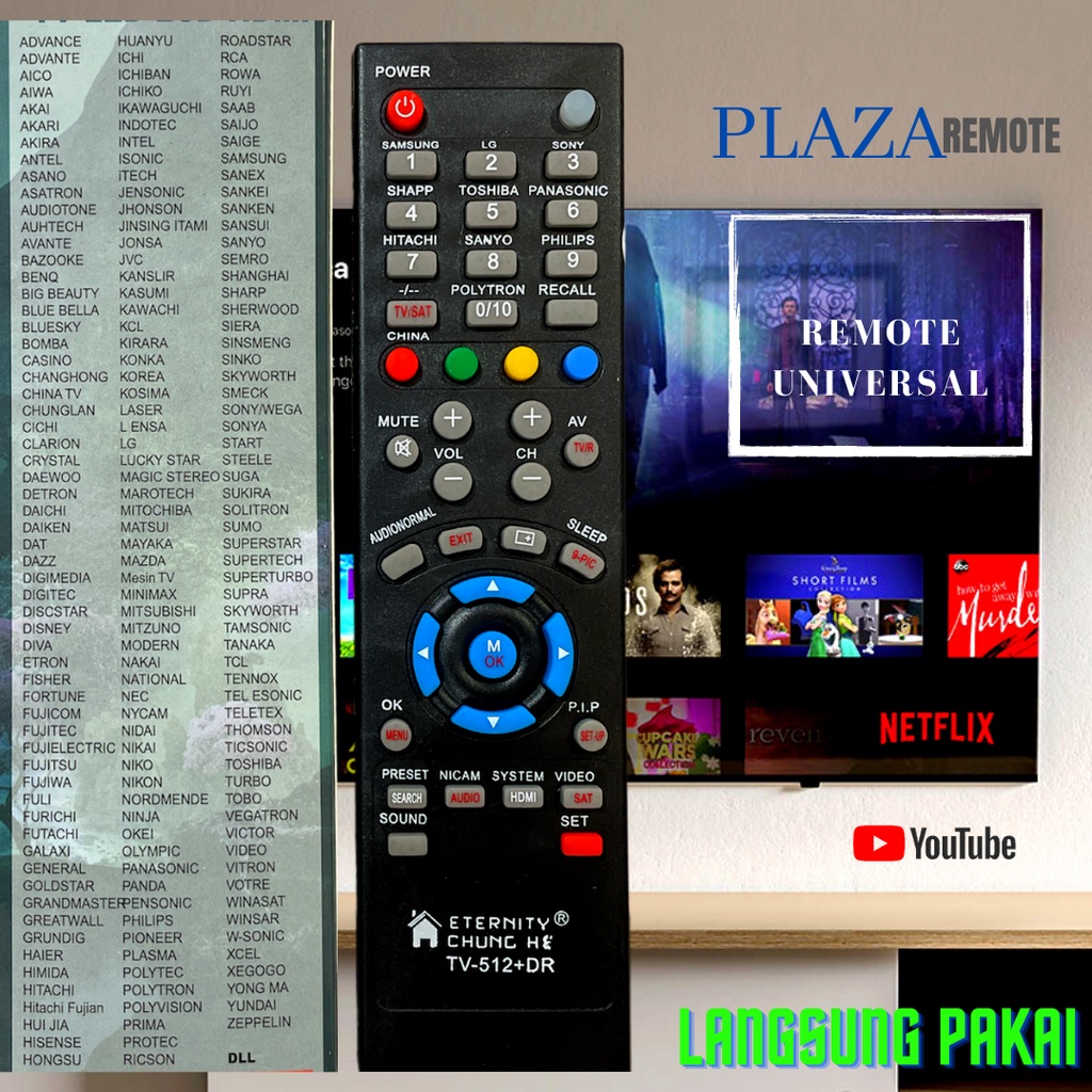 REMOTE MULTI TV LCD LED TABUNG CHUNGHE 512 LG ICHIKO JUC SONY POLYTRON DLL