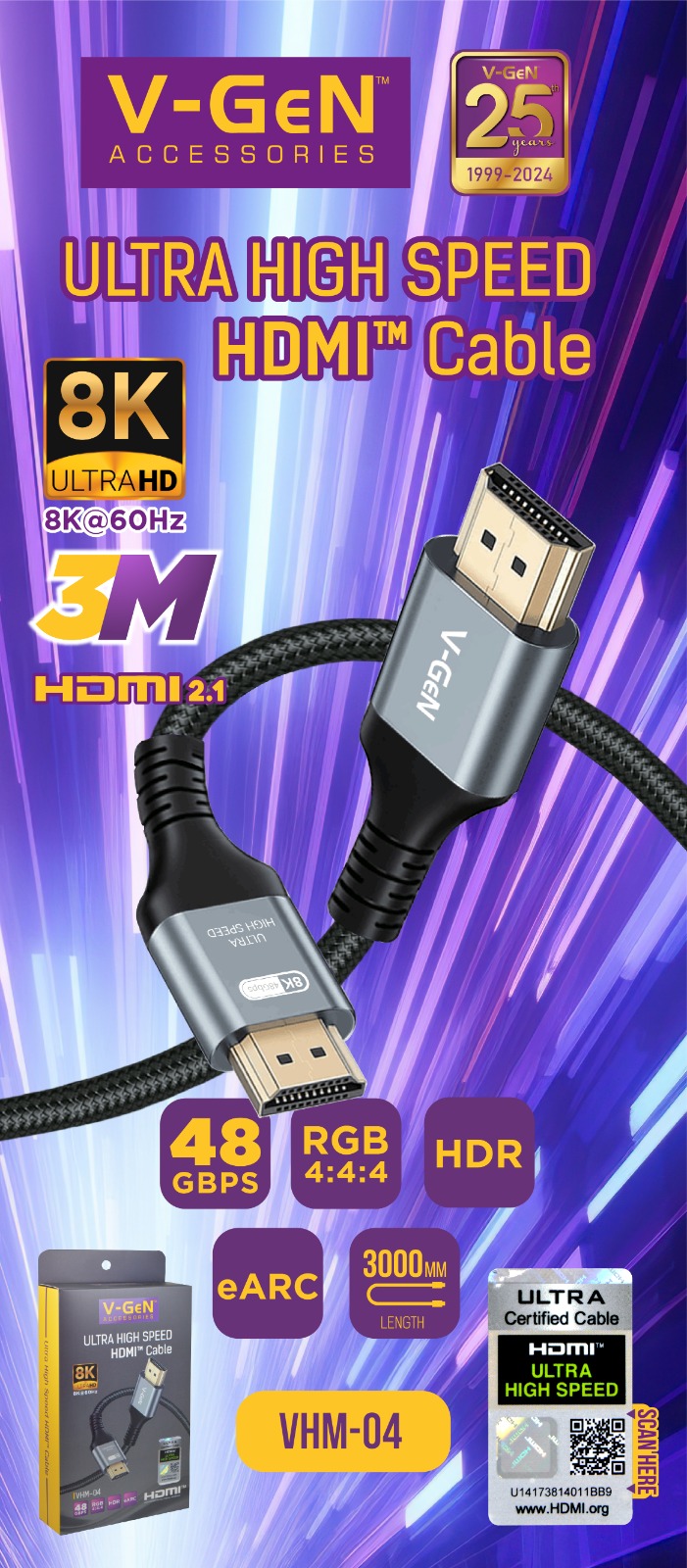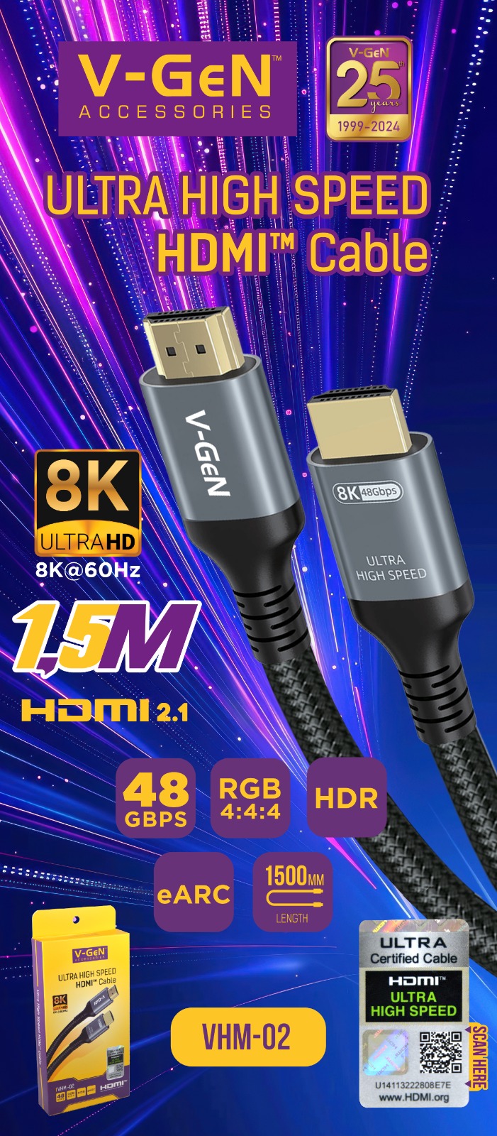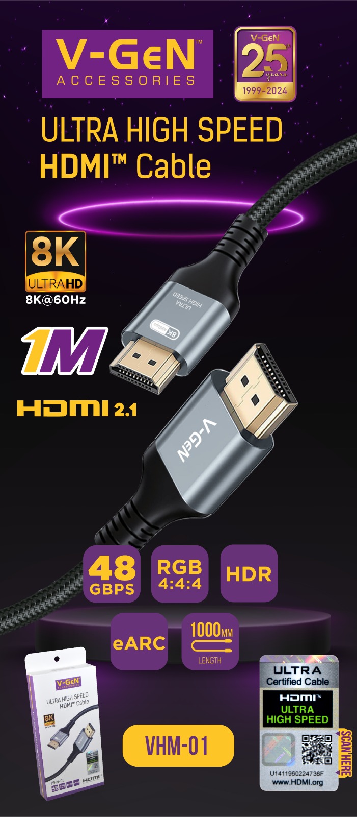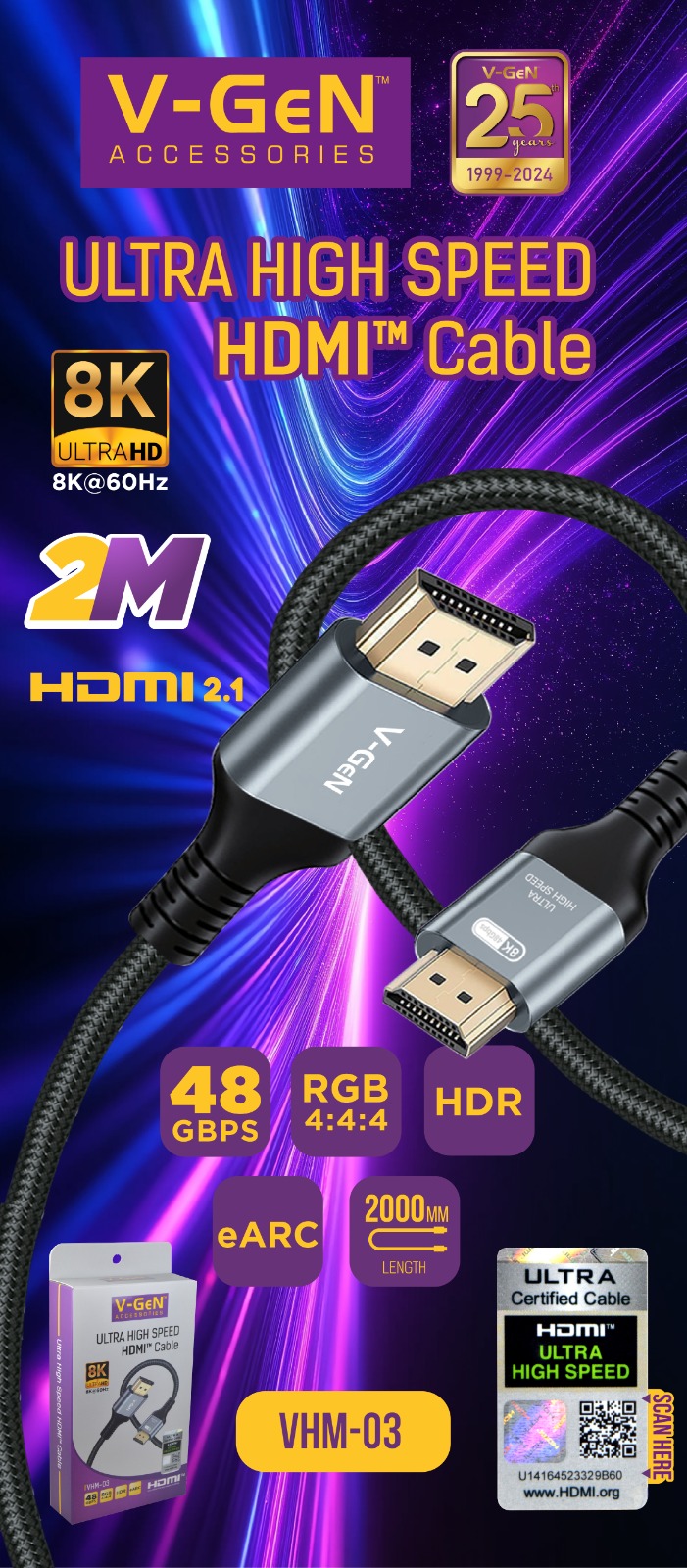 Kabel HDMI V-GeN Ultra High Speed 8K Ultra HD 60Hz VHM01 1Meter VHM02 1.5Meter VHM03 2Meter VHM04 3Meter