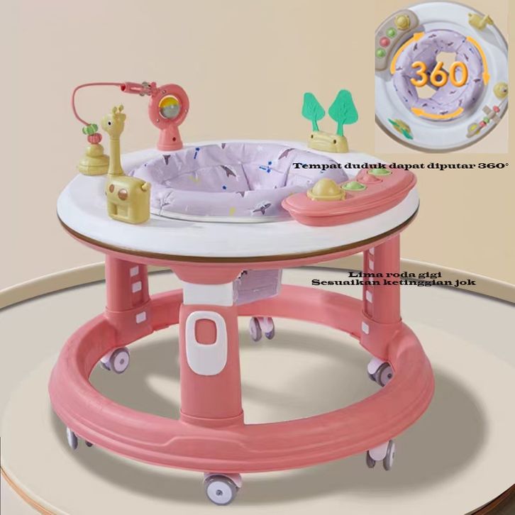 Baby Walker Bayi dengan Musik dan Mainan, Bahan Plastik Tahan Lama untuk Usia 6-18 Bulan Mmflight