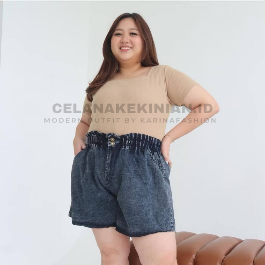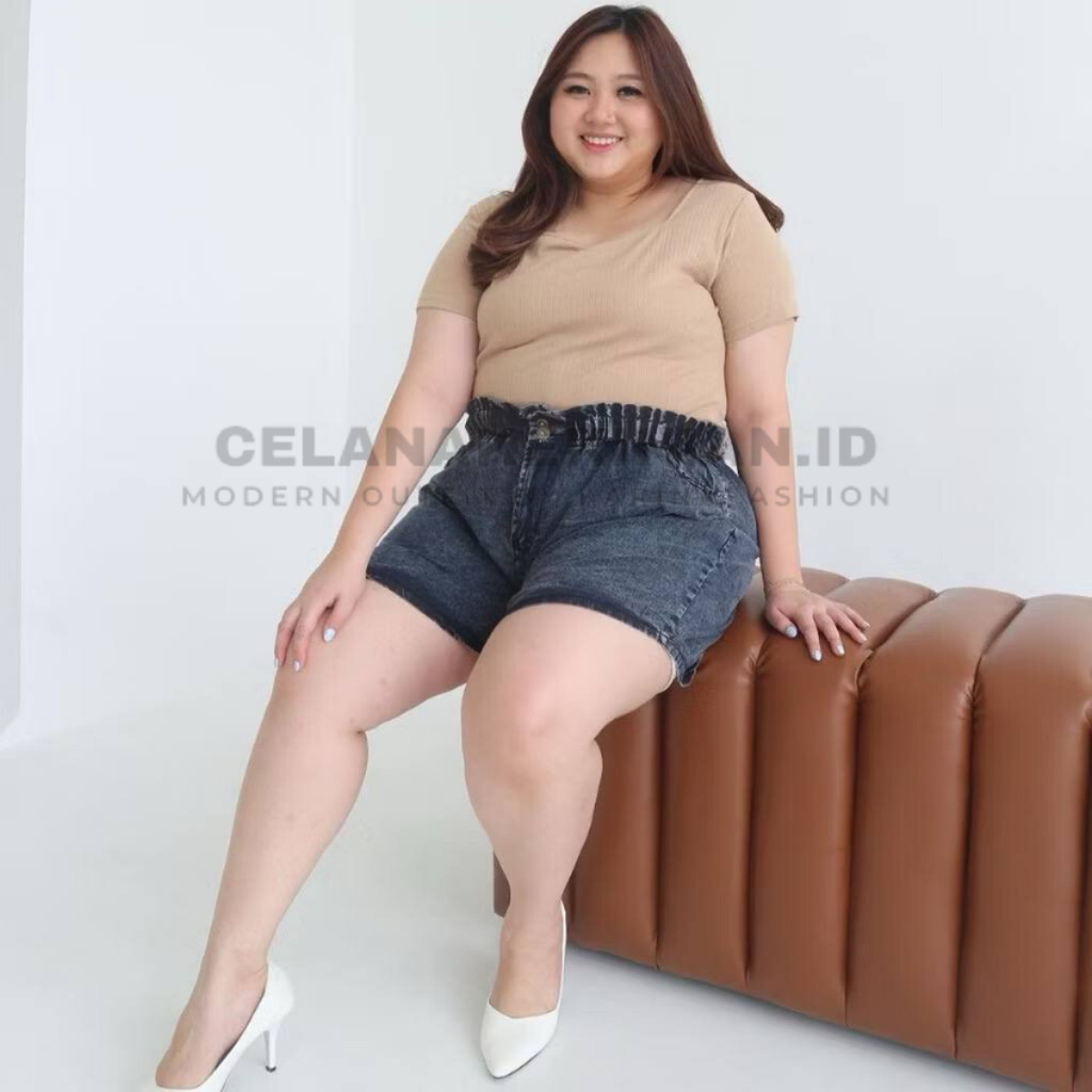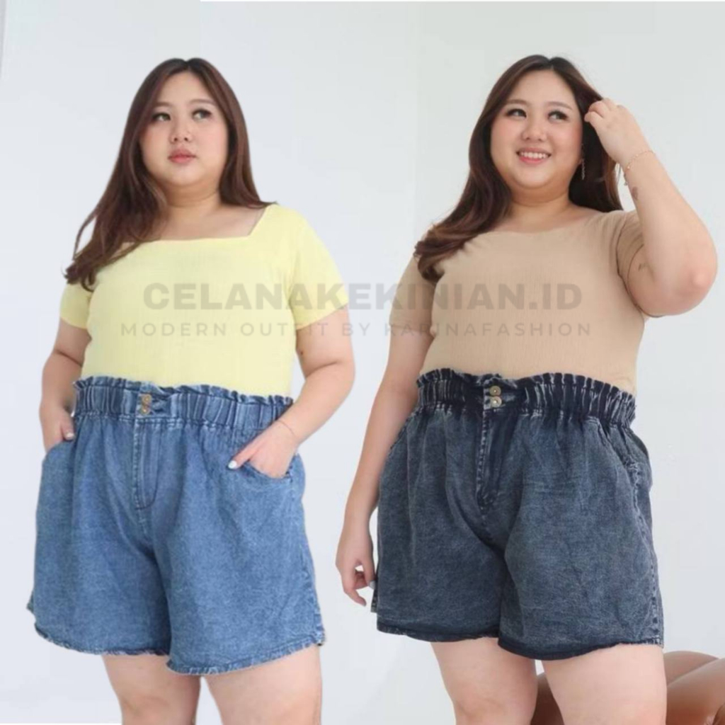 Celana Pendek Wanita Santai Super Jumbo Kekinian Hotpants Jeans Bigsize Pinggang Karet Elastis Bahan Halus Dan Adem