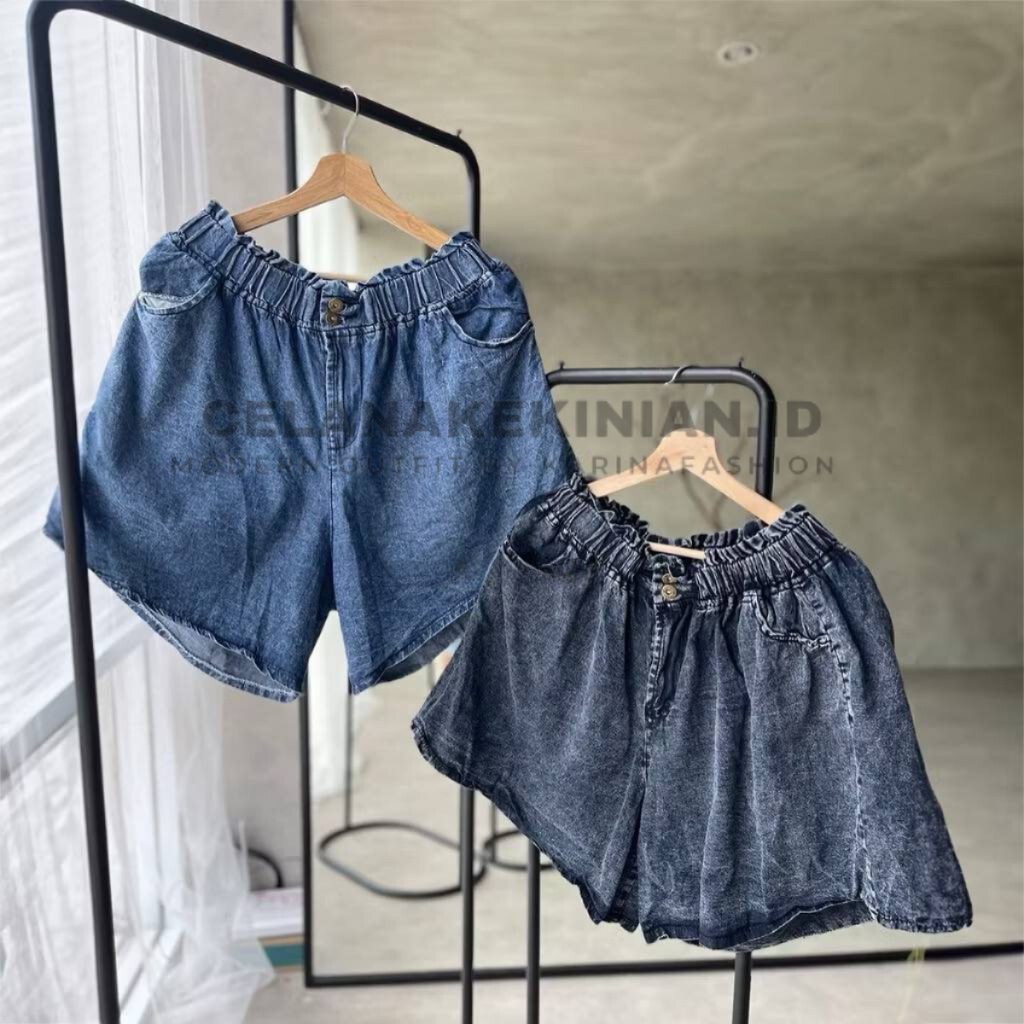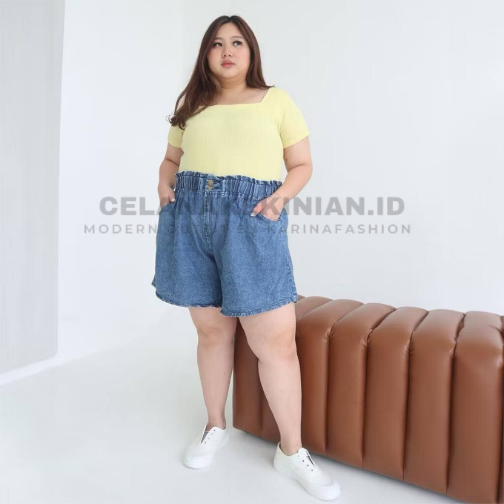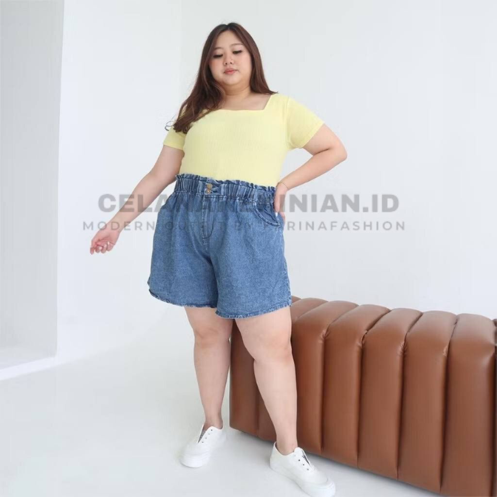 Celana Pendek Wanita Santai Super Jumbo Kekinian Hotpants Jeans Bigsize Pinggang Karet Elastis Bahan Halus Dan Adem